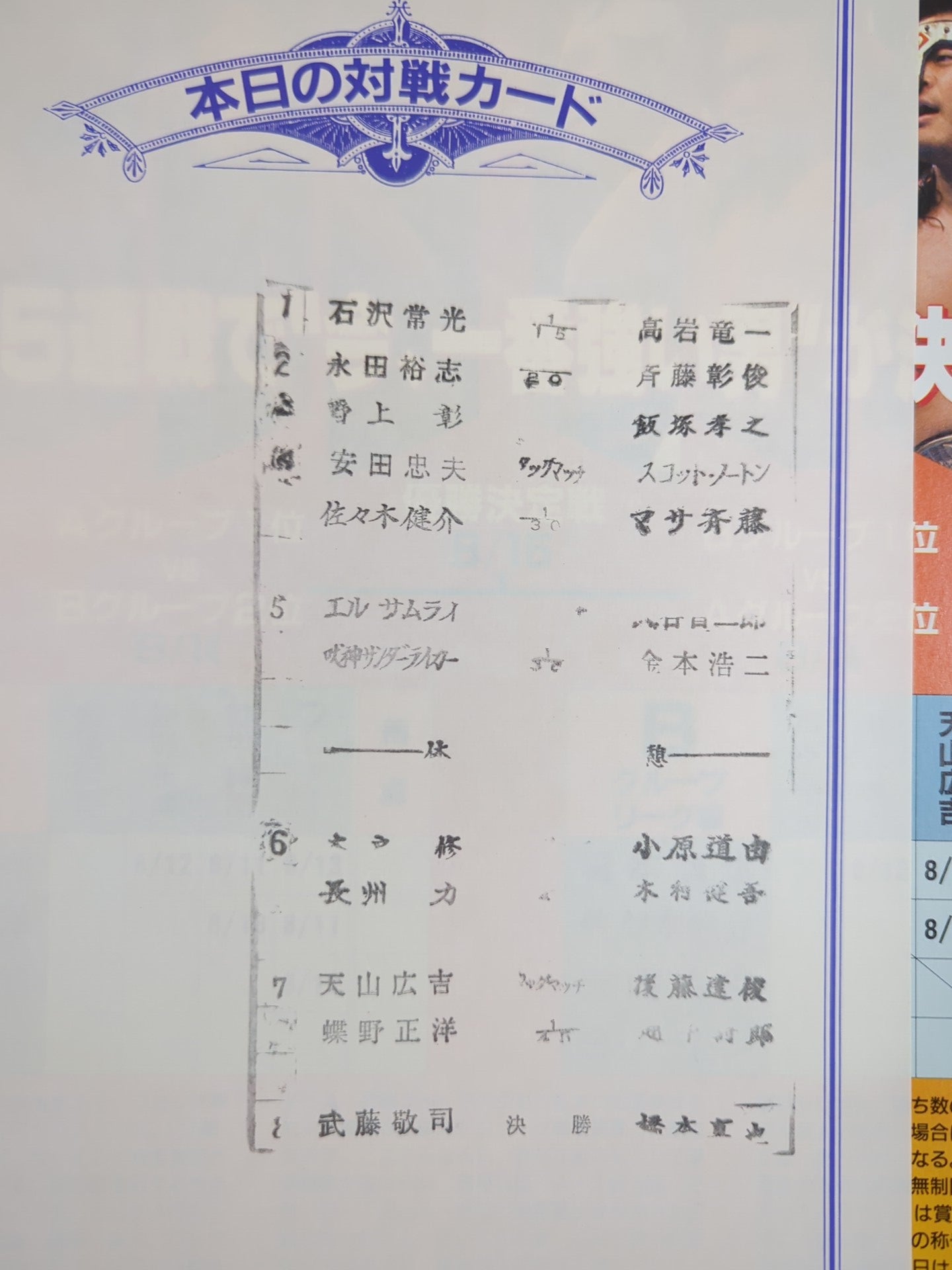Venue: Ryogoku / stamped with list of matches 【Finals】 Muto Keiji vs Shinya Hashimoto * Muto's first victory / Masahiro Chono &Hiroyoshi Tenzan vs Shiro Koshinaka & Tatsutoshi Goto / G1 CLIMAX / G1 Climax 5