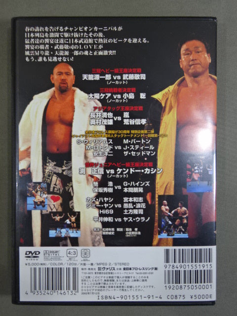 Tenryu Genichiro vs Muto Keiji /Taiyo Kea vs Satoshi Kojima /Masanobu Fuchi vs Kendo Kashin match, etc. ○ Champion carnival heralding the arrival of spring. After running through the Japan archipelago in a fierce battle, the feast of the fierce men finally reached the peak of enthusiasm at the Japan Budokan. The champion of the feast, LOVE of Muto Keiji , clashes head-on with the soul of the rising dragon Tenryu Genichiro ! No one can miss it anymore! !