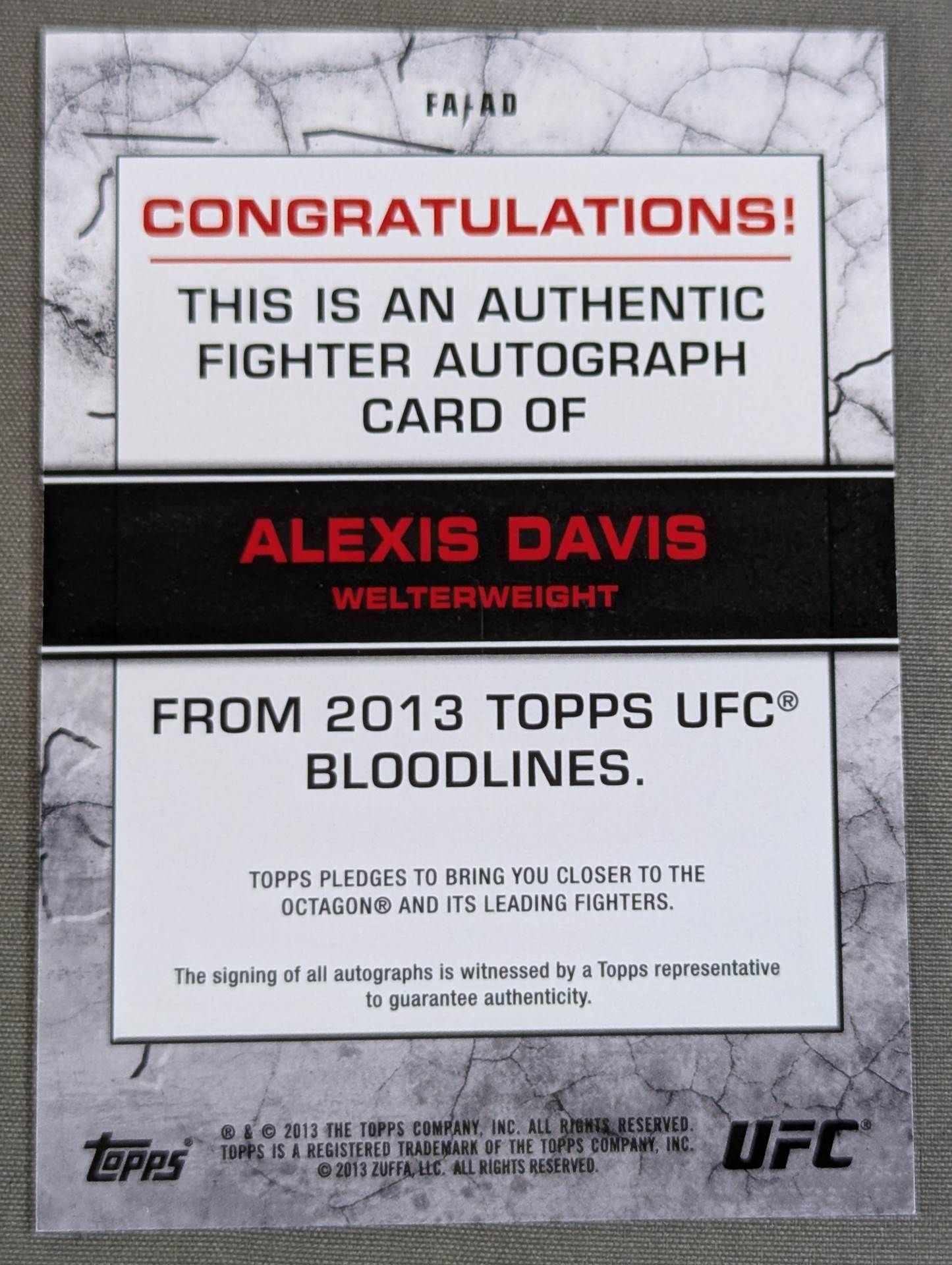 2013 UFC topps Alexis Davis Official Relic Card