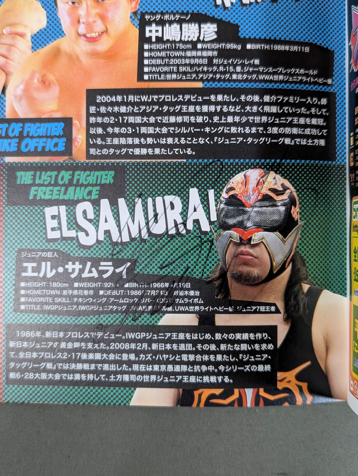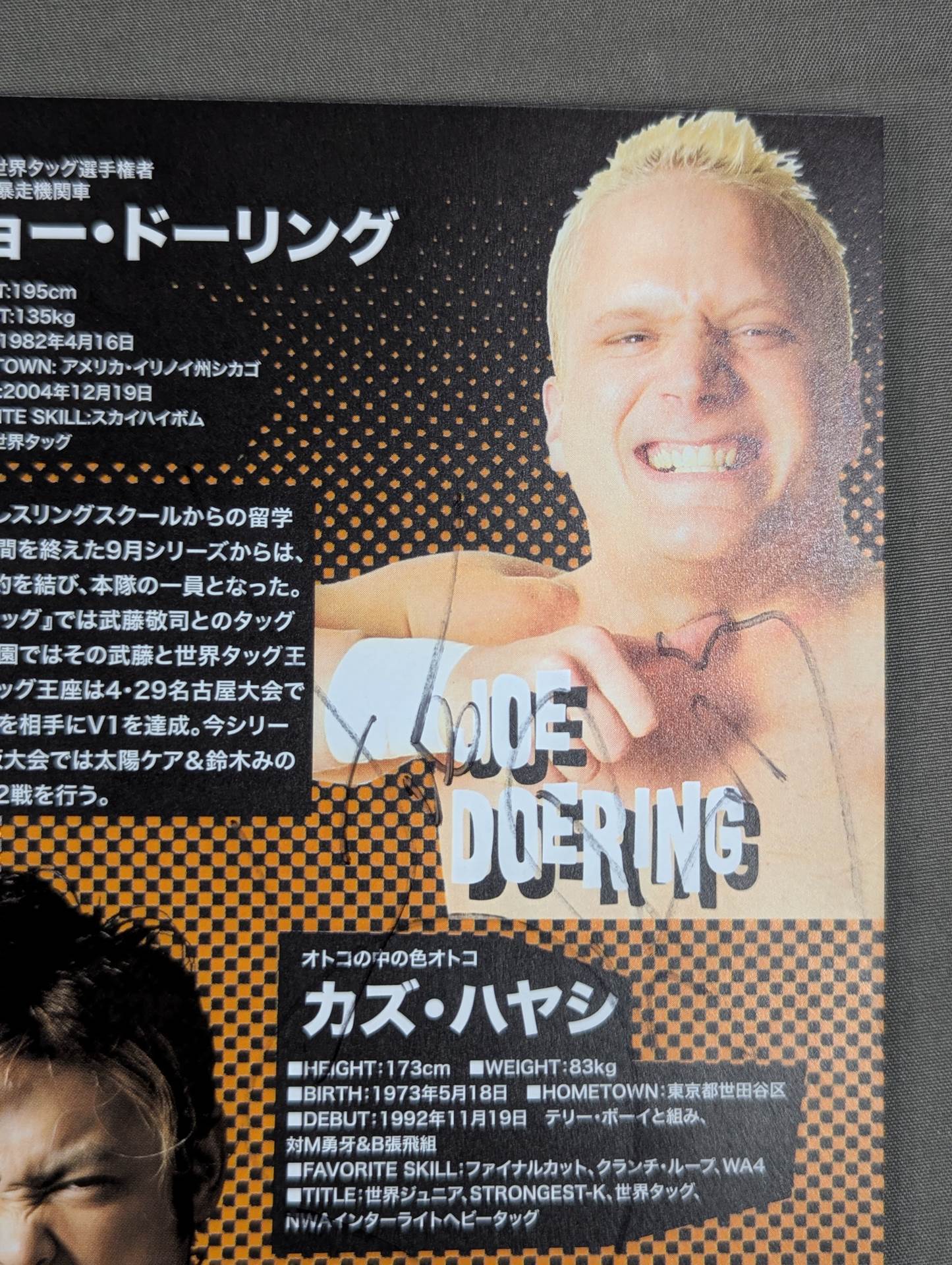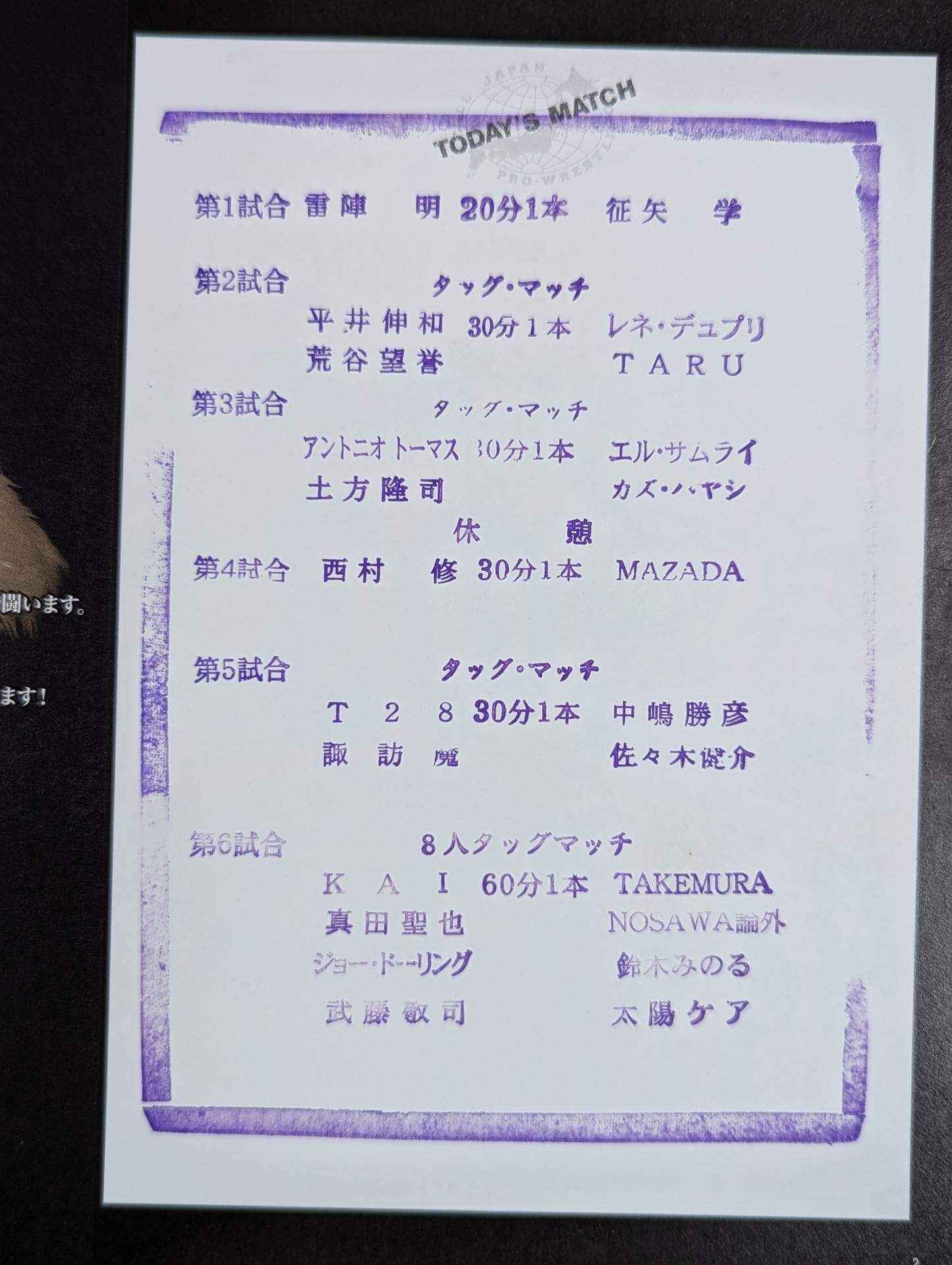 Joe Doring, Taiyo Kea , El Samurai and more than 3 fighters hand signed autograph !! / Venue: Yamagata, Yonezawa Municipal Gymnasium / stamped with list of matches : Muto Keiji & Joe Doring & Seiya Sanada & KAI vs Taiyo Kea & Minoru Suzuki & NOSAWA RONGAI & TAKEMURA