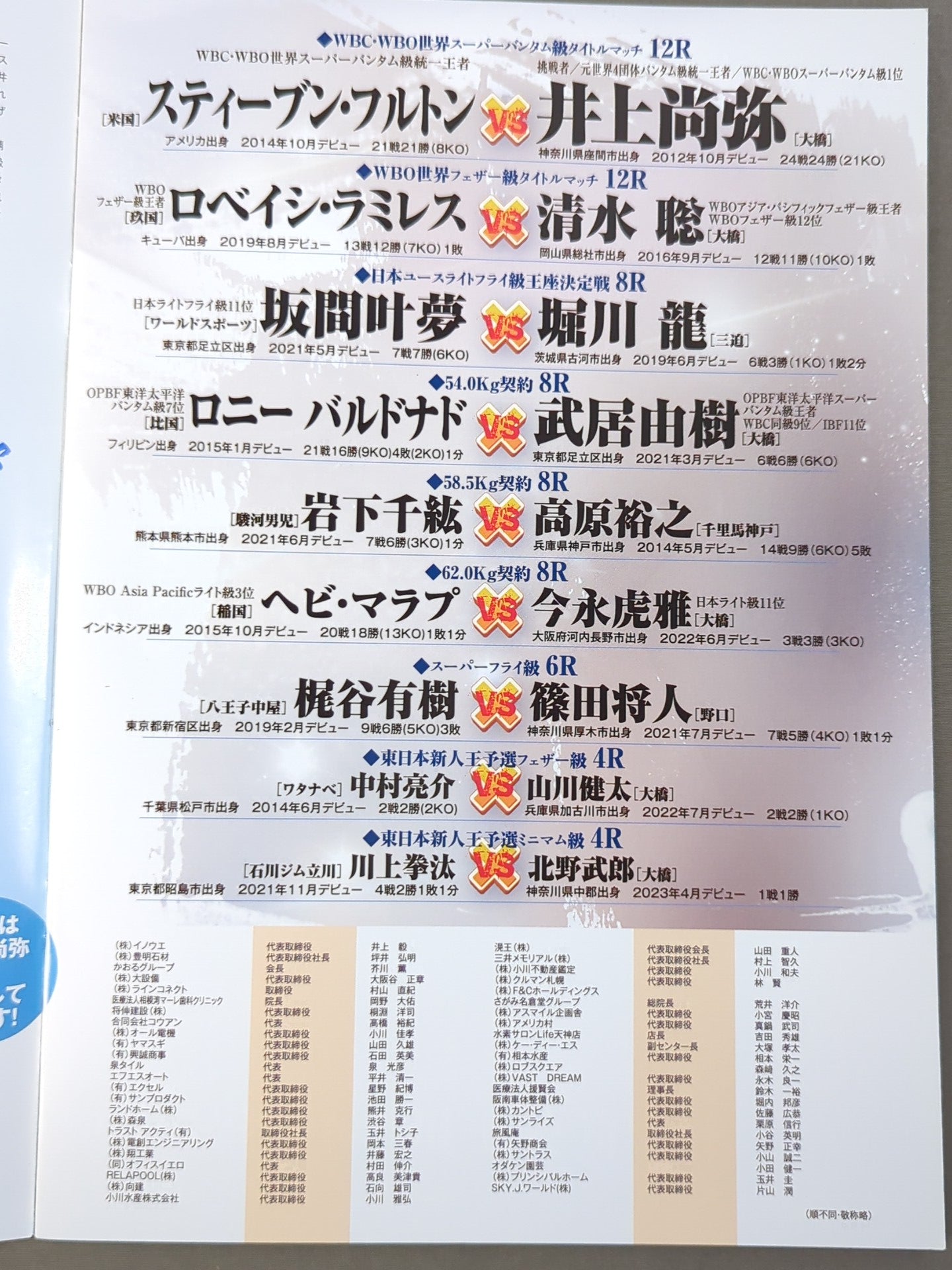 Venue: Ariake Arena / list of the matches is printed : [WBC/WBO World Super Bantamweight Title Match] Naoya Inoue vs. Stephen Fulton / [ WBO World Featherweight Title Match] Robeisi Ramirez vs. Satoshi Shimizu