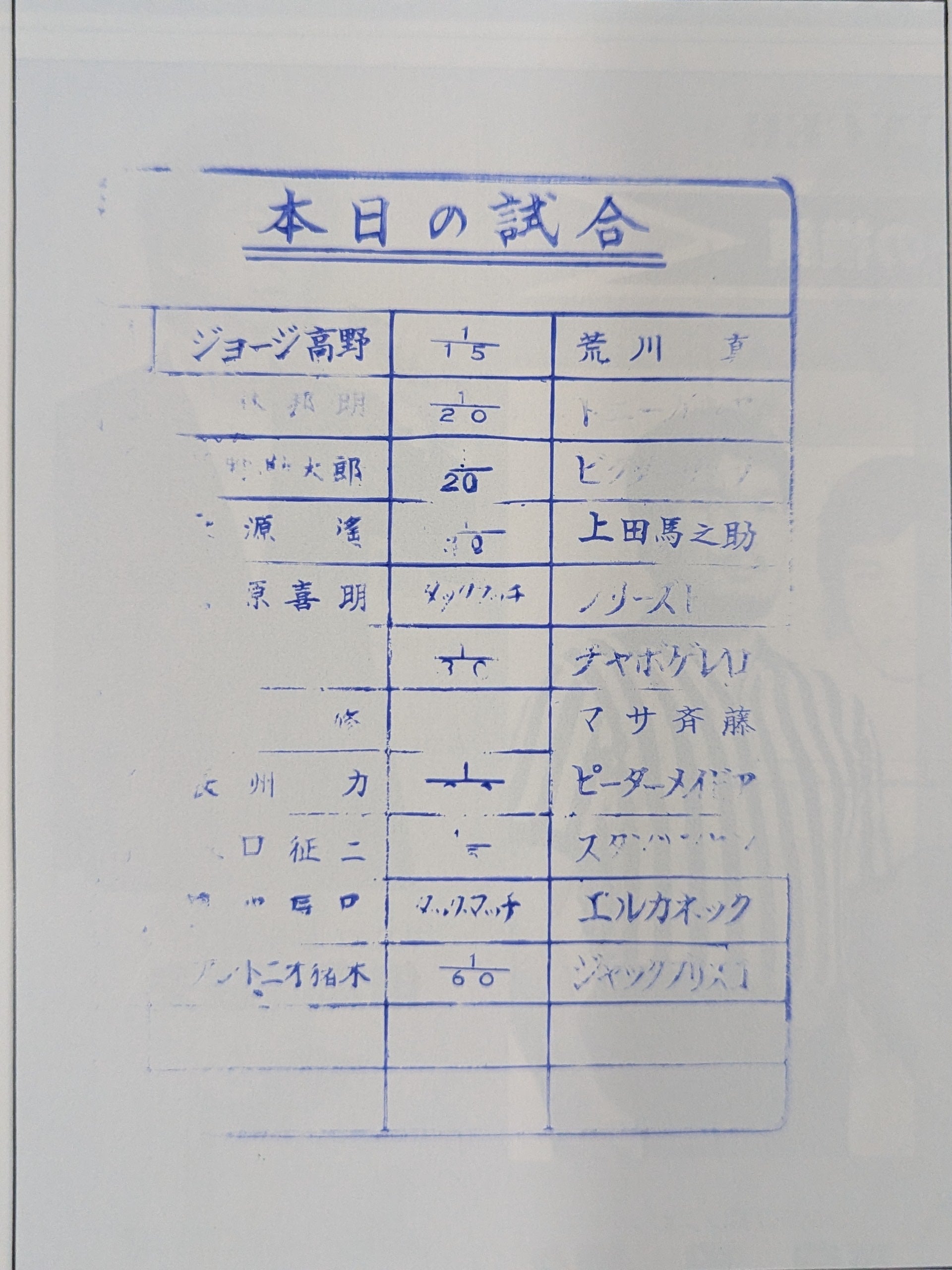 Venue: Korakuen Hall / stamped with list of matches : Antonio Inoki & Tatsumi Fujinami vs Jack Briscoe & El Canek Madison Square Garden Series / Madison Square Garden