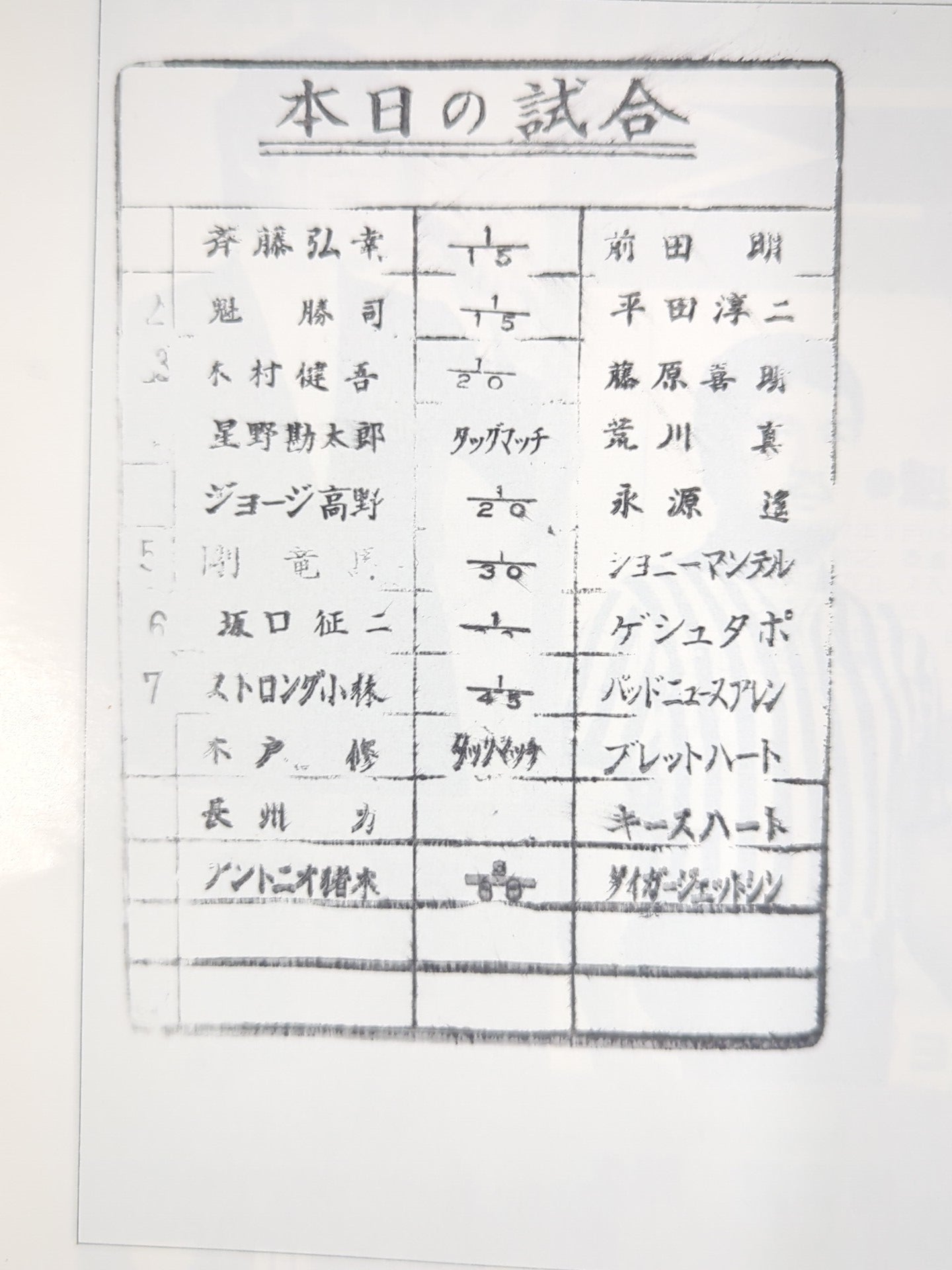 Venue: Abashiri City General Gymnasium, Hokkaido / stamped with list of matches :Antonio Inoki & Osamu Kido & Riki Choshu vs Tiger Jeet Singh & Bret Hart & Keith Hart / Bad News Allen vs Strong Kobayashi