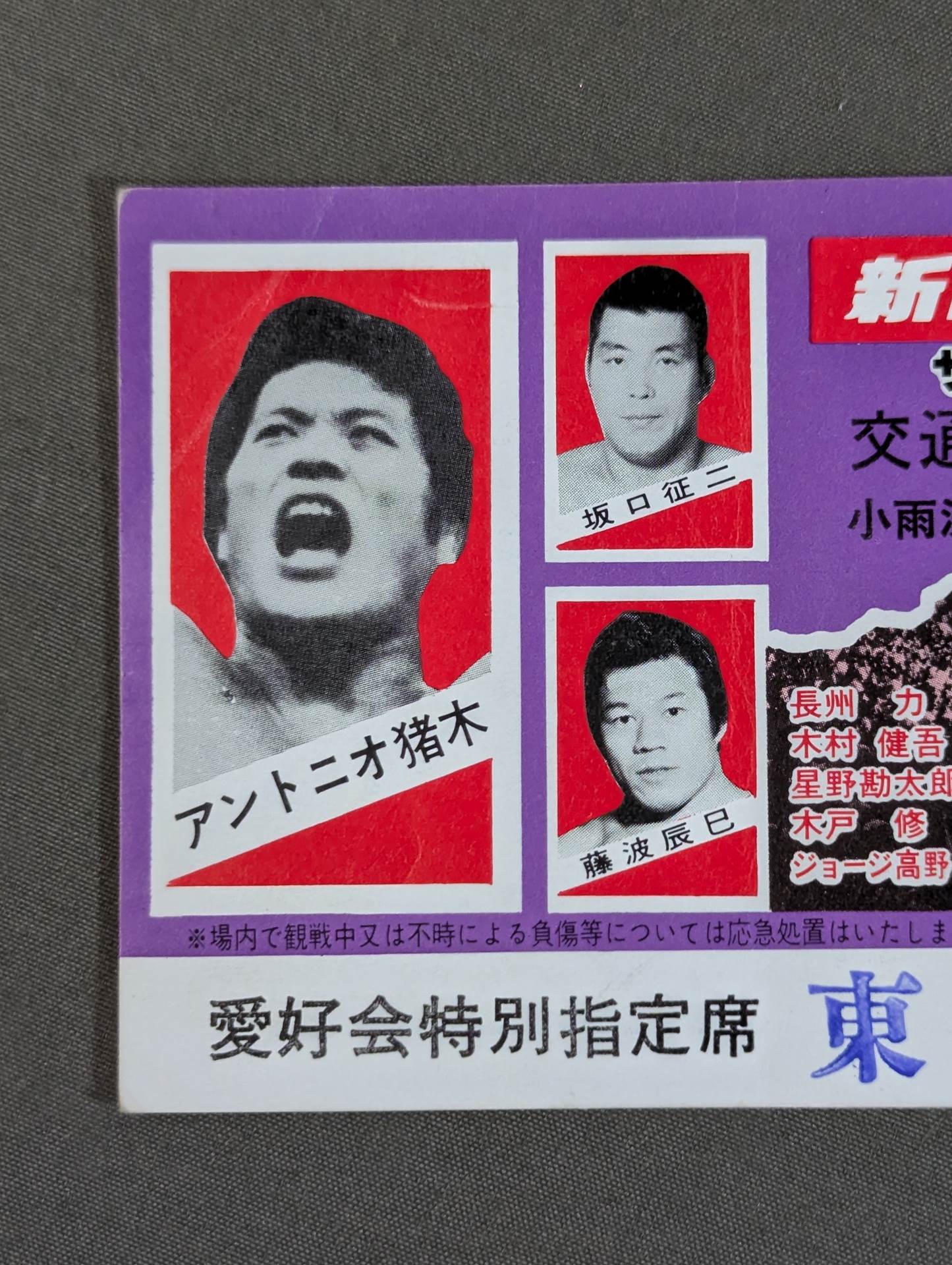 Hobby Association Special Reserved Seat East Side C Row No. 10 / Abdullah the Butcher & Bat News Allen vs Antonio Inoki & Riki Choshu