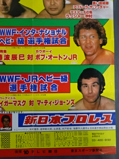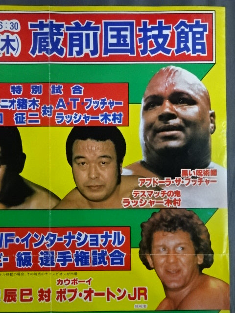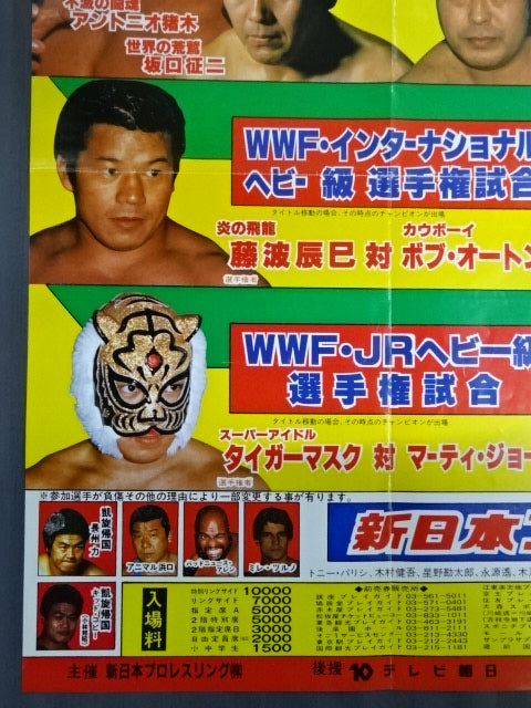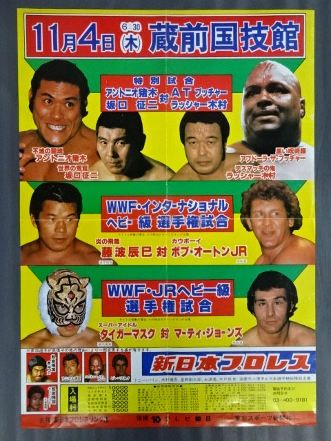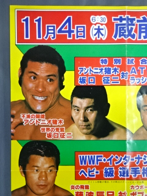 [Special Match] Antonio Inoki & Seiji Sakaguchi vs Rusher Kimura & Abdullah the Butcher (*The actual match was "1vs3 Irregular Tag Team Match (First Match)"Antonio Inoki vs Lasher Kimura & Animal Hamaguchi & Isamu Teranishi / WWF International Fighters right match] Tatsumi Fujinami vs Bob Orton Jr. / [WWF Junior Heavyweight fighters Rights Match] Tiger Mask vs. Marty Jones (*Changed to Kuniaki Kobayashi) / [Special Match] Antonio Inoki & Seiji Sakaguchi vs Lasher Kimura & Abdullah the Butcher / Size (74cm×52cm)