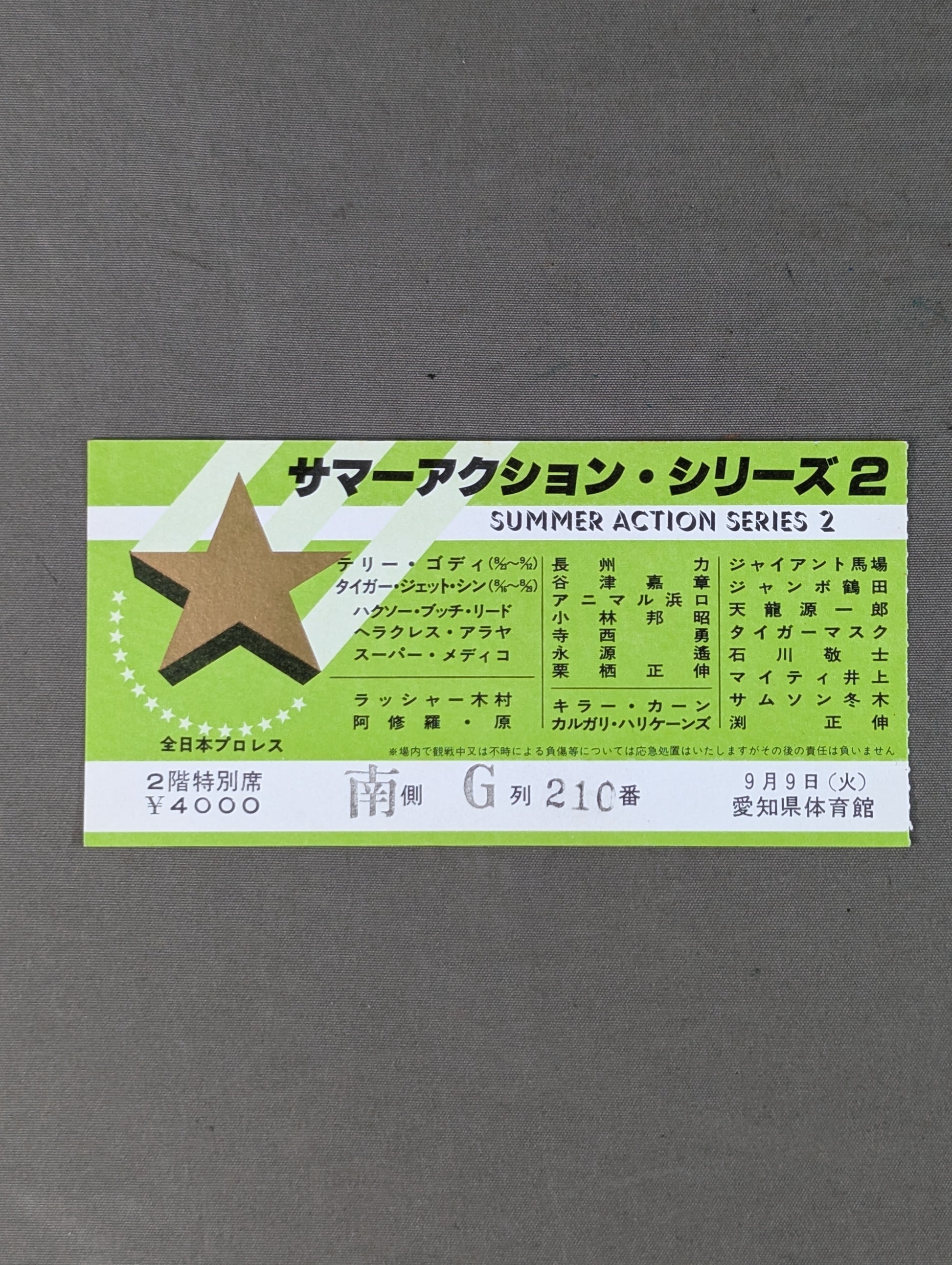 2nd floor special seat South Row G No. 210 / [PWF Heavyweight/International Heavyweight Double Fighters Match] Riki Choshu vs Stan Hansen