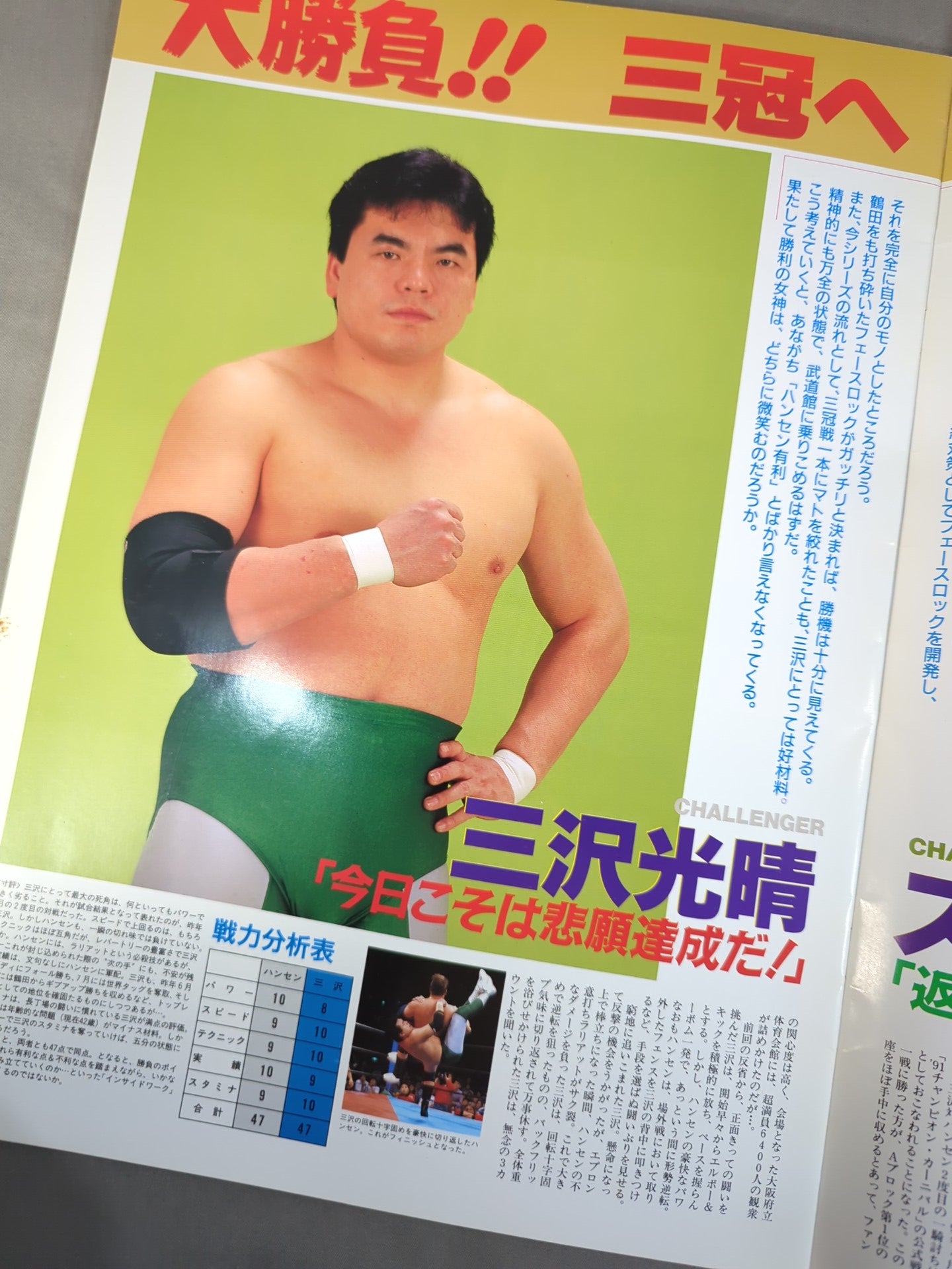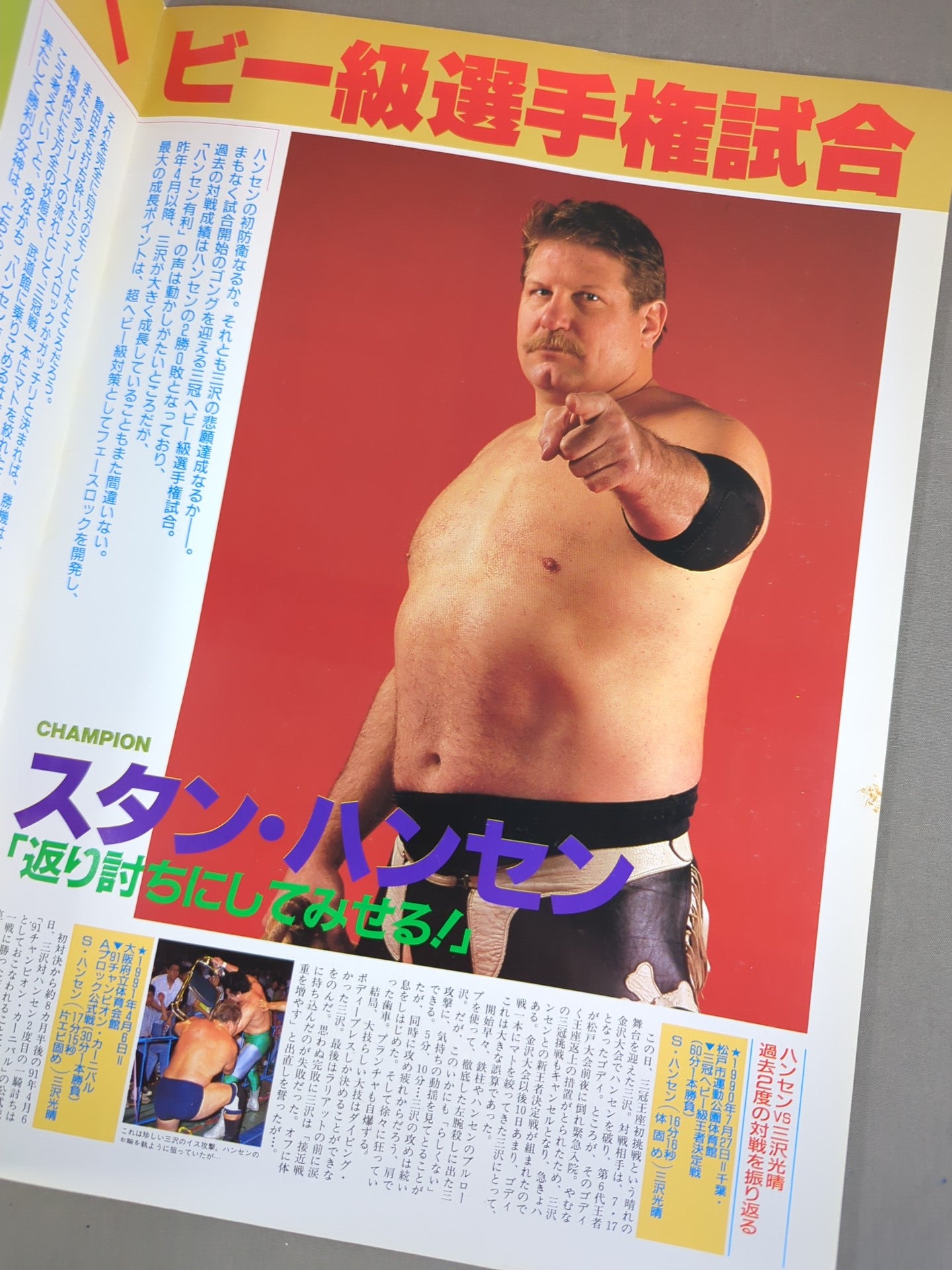 Venue: Japan Budokan / list of the matches is printed: [World Tag Team Fighters Title match] Terry Goddy & Steve Williams vs. Jumbo Tsuruta & Akira Taue / [Triple crown heavyweight fighters match] Stan Hansen vs Mitsuharu Misawa