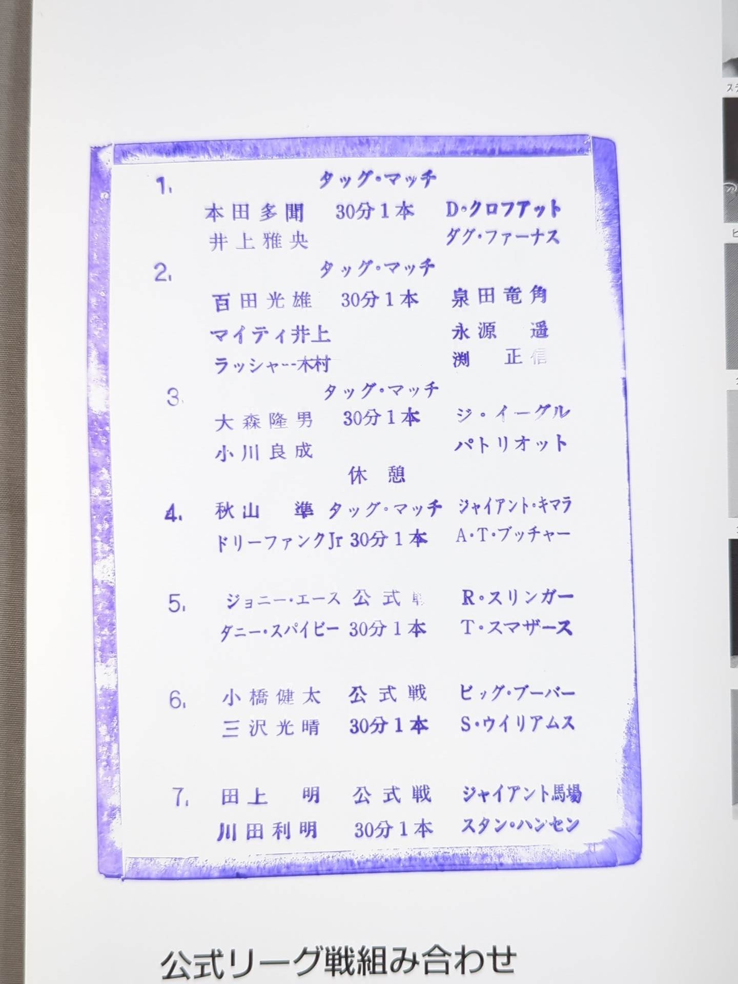 Venue: Osaka Prefectural Gymnasium / stamped with list of matches : [Official match] Akira Taue & Toshiaki Kawada vs Giant Baba & Stan Hansen / [Official Match] Mitsuharu Misawa & kenta Kobashi vs Steve Williams & Big Boober