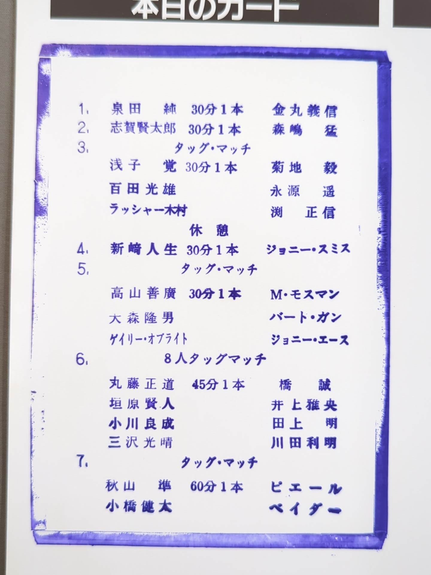 Venue: Messe Akishima, Tokyo / stamped with list of matches : kenta Kobashi & Jun Akiyama vs Vader & Pierre / Mitsuharu Misawa & Yoshinari Ogawa & Kento Kakihara & Naomichi Marufuji vs Toshiaki Kawada& Akira Taue & Mao Inoue & Makoto Hashi