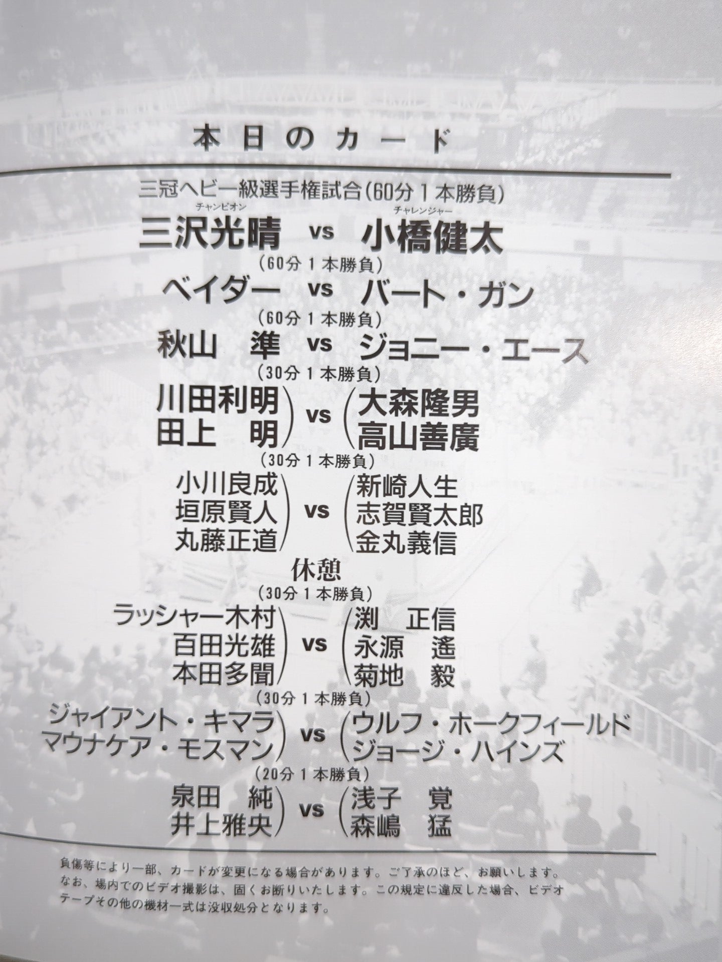 Venue: Japan Budokan (Final Match) / List of the matches is printed : 【Triple Crown Heavyweight fighters  Rights Match] Mitsuharu Misawa vs Kenta Kobashi  / Vader  vs Bert Gunn / Jun Akiyama vs Johnny Ace