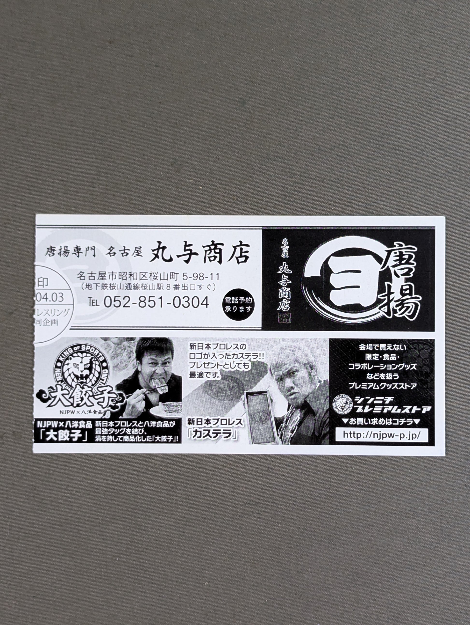 Ringside East Side Row A No. 22 / Hiroshi Tanahashi & Togi Makabe &Hirooki Goto & Captain New Japan vs Shinsuke Nakamura & Tomohiro Ishii & Toru Yano & YOSHI-HASHI