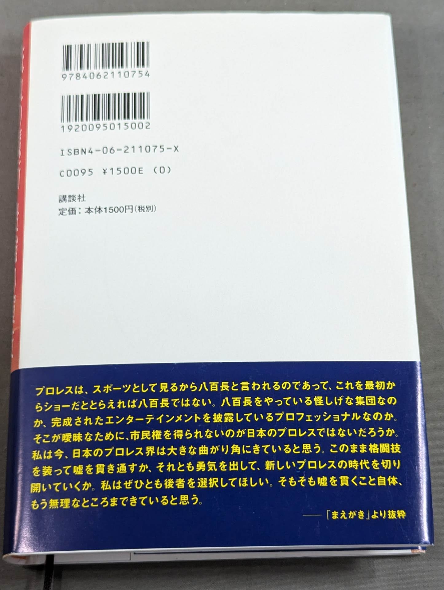 Hardback Kodansha / "Pro Wrestling is a complete form of entertainment!! As a referee for New Japan Pro Wrestling , Antonio Inoki , Seiji Sakaguchi, Tatsumi Fujinami , Riki Choshu and others The man who has judged the most matches is Pro Wrestling Because of his love, he finally revealed the truth about "magic and acting"! ! The biggest and last taboo since the birth of Pro Wrestling in Japan is fiercely white!