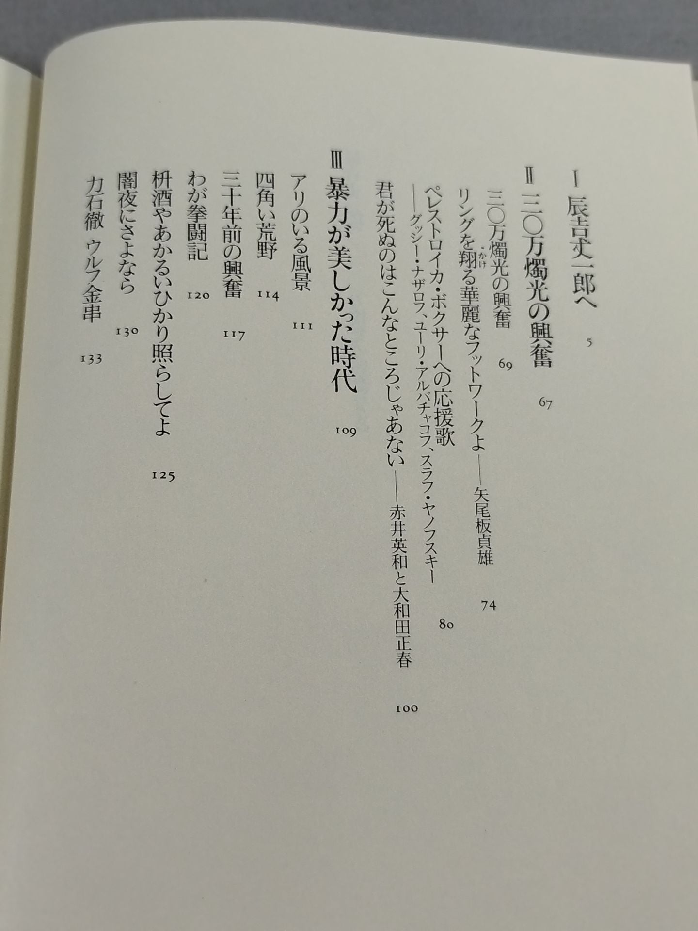 1994 Hardback Yosensha / In this age of satiation, what do boxers hunger and fight for? A boxer who goes against the sweet nectar scent of youth, fulfills himself with harsh shackles, and fights for limited time. The author explains through watching the fire, a collection of essays on life in a painful fist fight.
