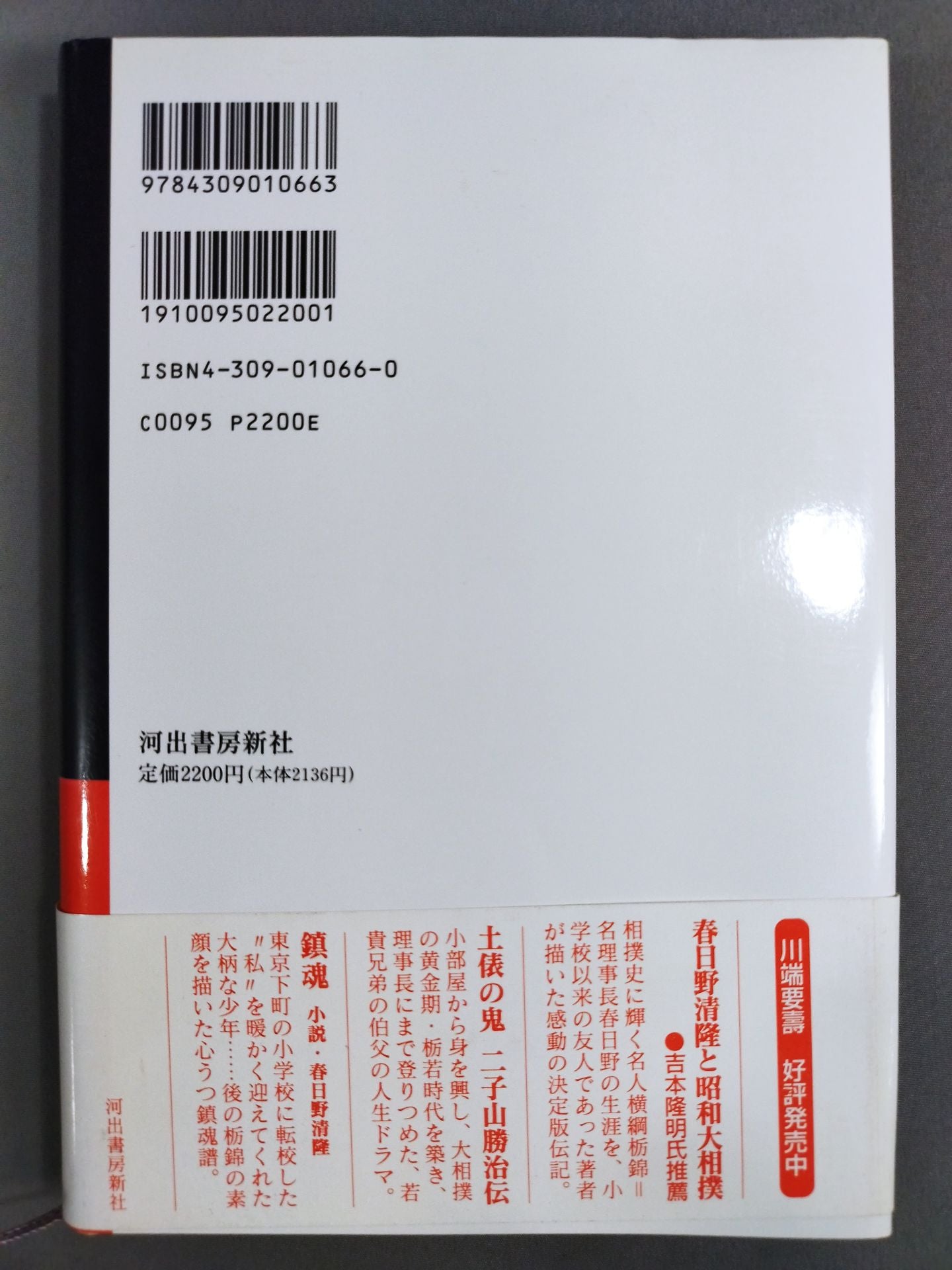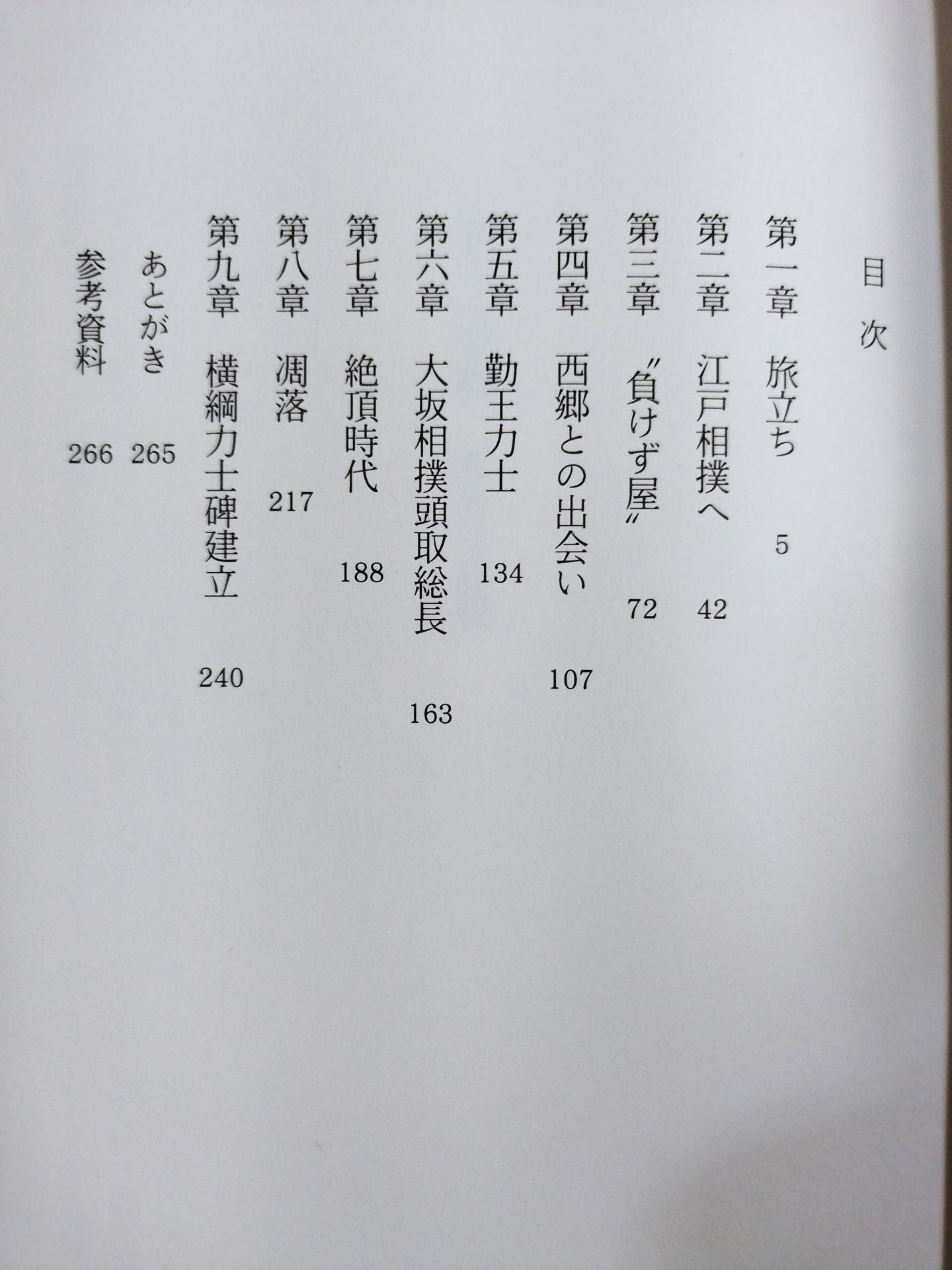 1996 Hardback Kawade Shobo Shinsha / During the turbulent period of the Tokugawa Restoration, he became an emissary of Saigo Takamori and traveled back and forth on the Tokaido. While being driven out of the Kakukai after the Restoration, he erected the Yokozuna monument that continues to this day at Tomioka Hachimangu Shrine in Tokyo. A sumo wrestling and historical novel that depicts the tumultuous life of the tragic yokozuna, who died in poverty despite his numerous achievements.