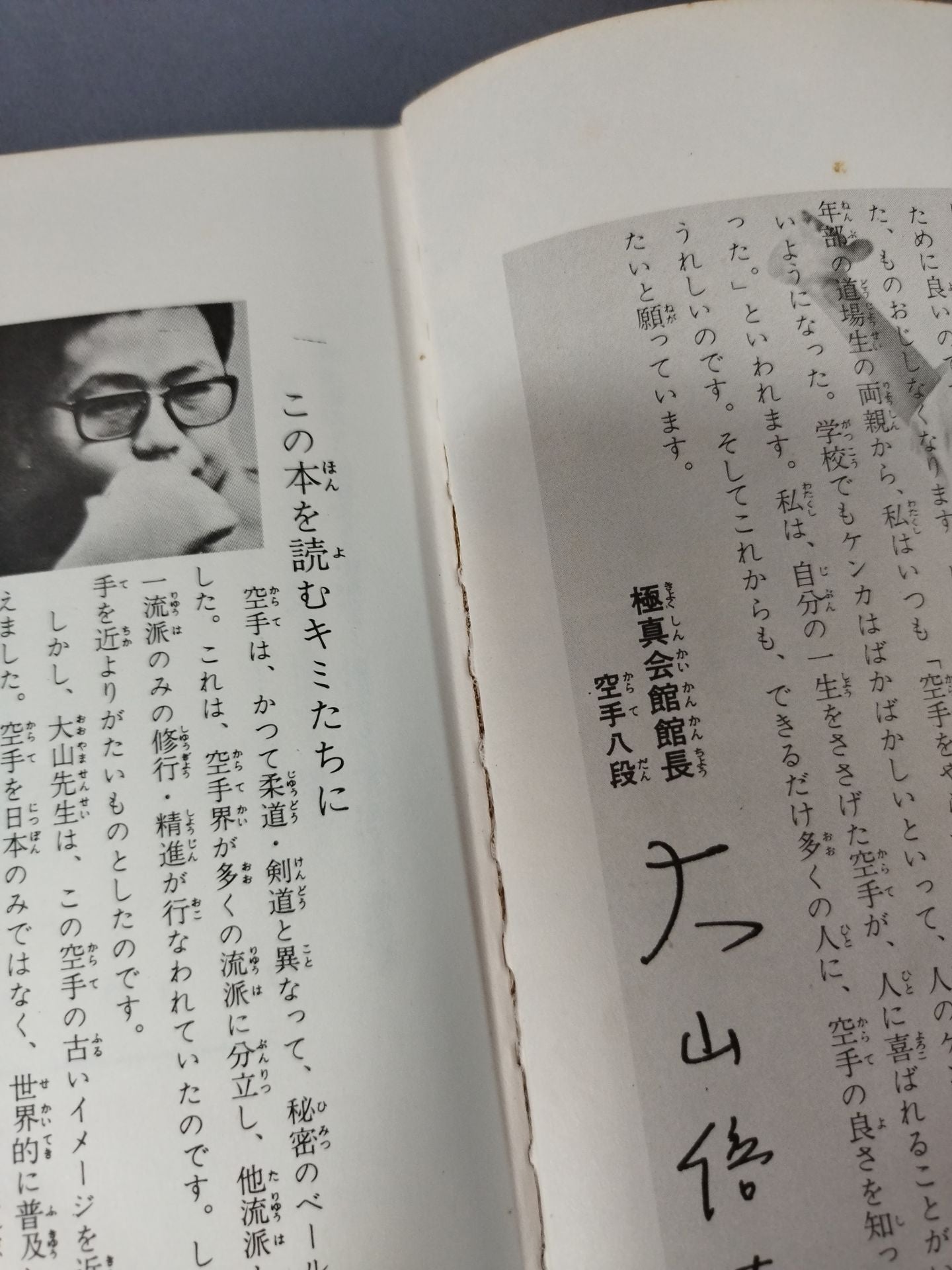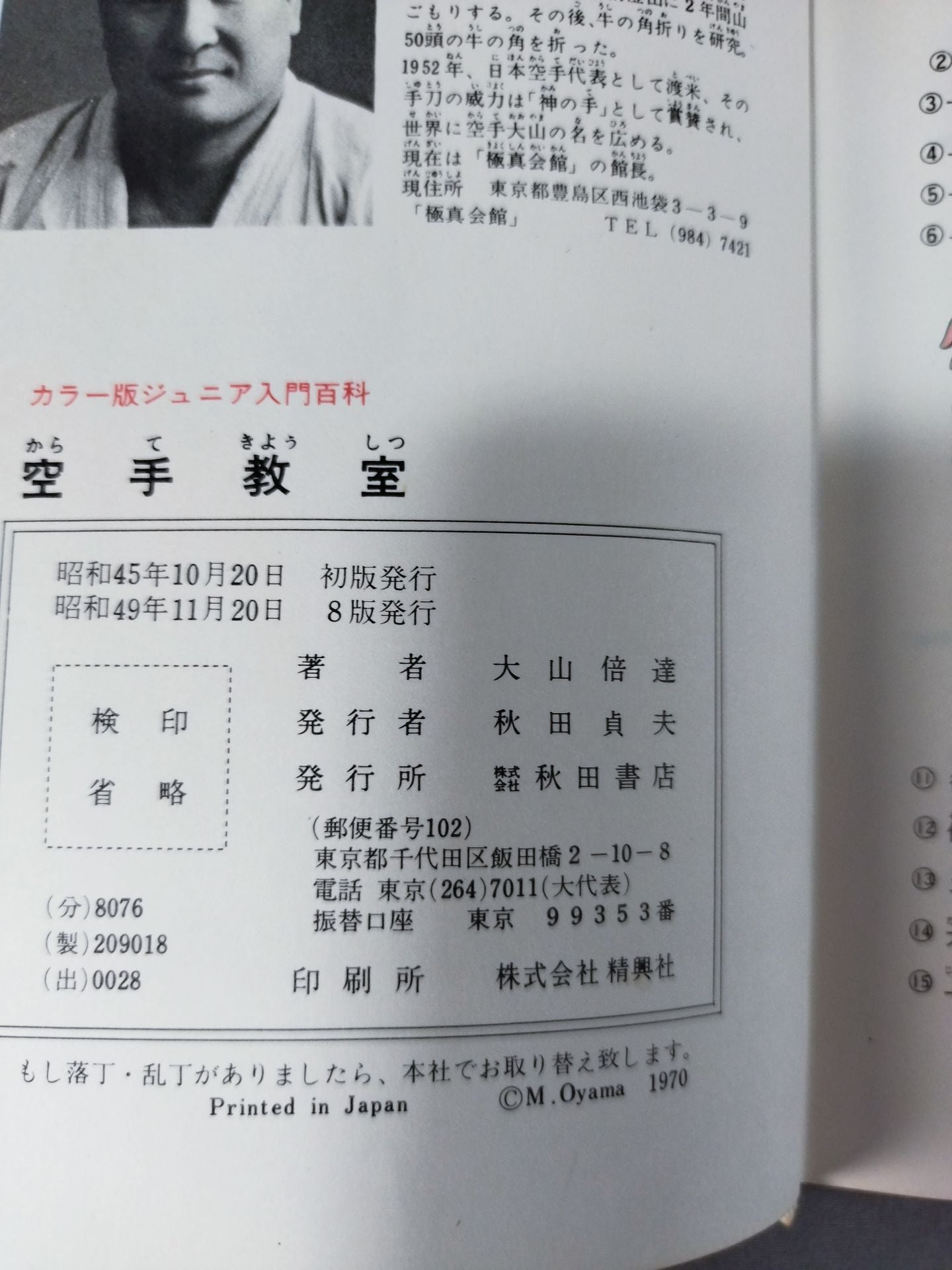 1970 Hardback Akita Shoten / Director of Kyokushin Kaikan with dojos around the worldThis is an introductory book to KARATE written by Mas Oyama (Masutatsu Oyama) in a gentle manner for boys. From the basics of KARATE to effective practice methods that improve in a short period of time, we teach you with illustrations and abundant photos.