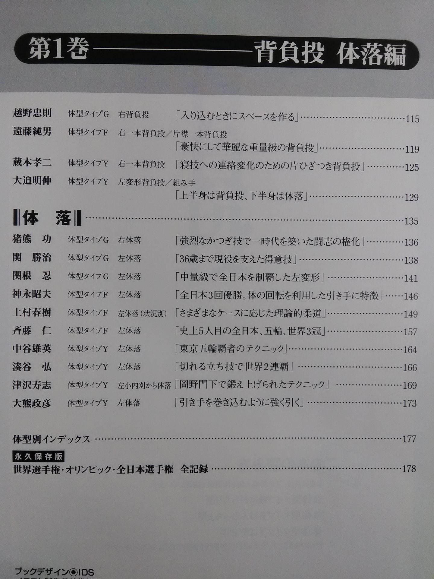 1999 Supervised by: Nobunori Sato (large format) Baseball Magazine / A book of judo throwing techniques that allows you to observe the techniques and key points of each technique, compiling the characters according to their body type. The specialty skills of specialists such as world champions and Olympic gold medalists are introduced in many photo by technique and body type. All records of the three major titles of world fighters rights, Olympic Games, and all Japan fighters rights are also included, as well as contact techniques. Volume 1 is a back-to-back toss and a body drop.