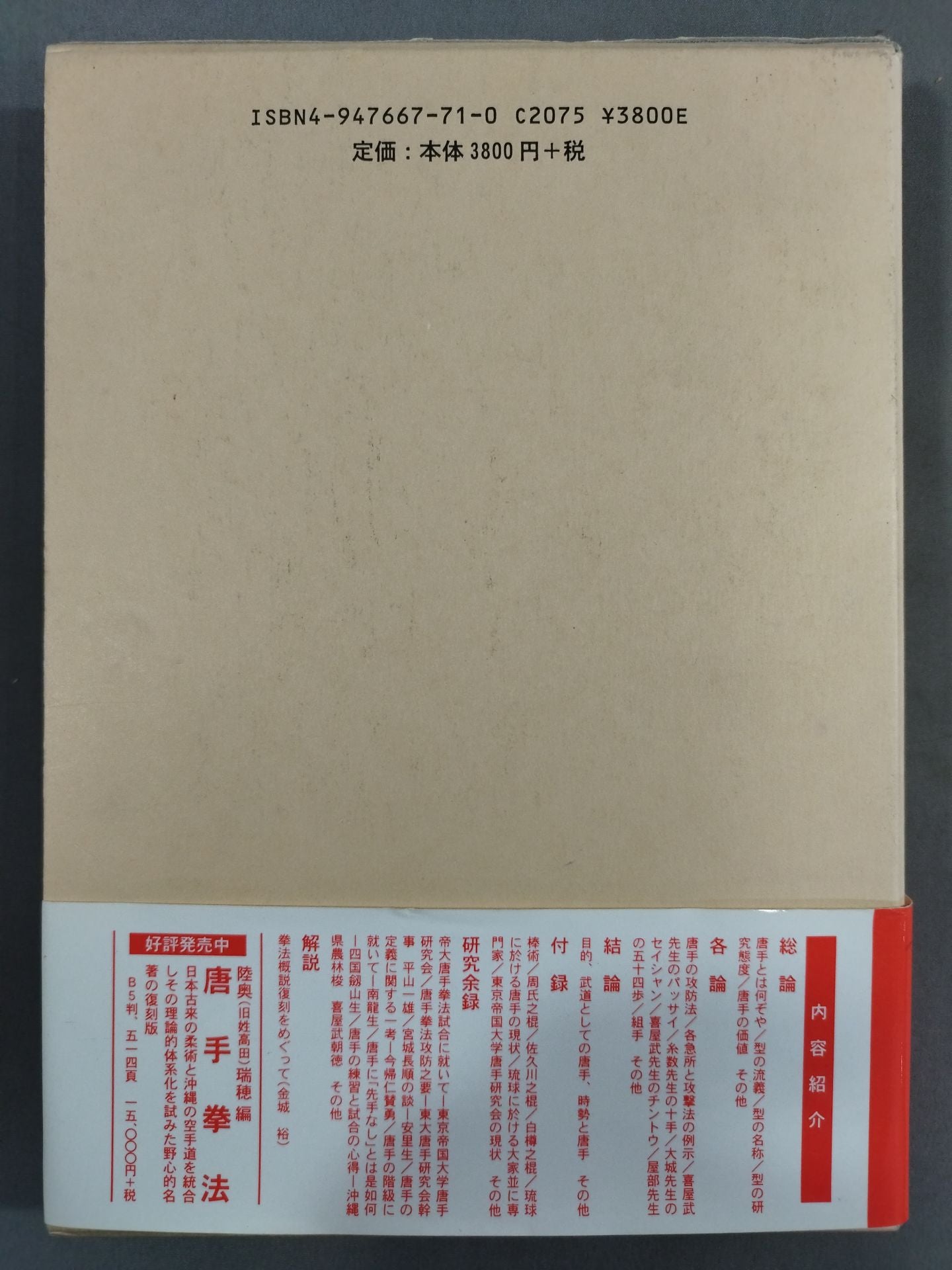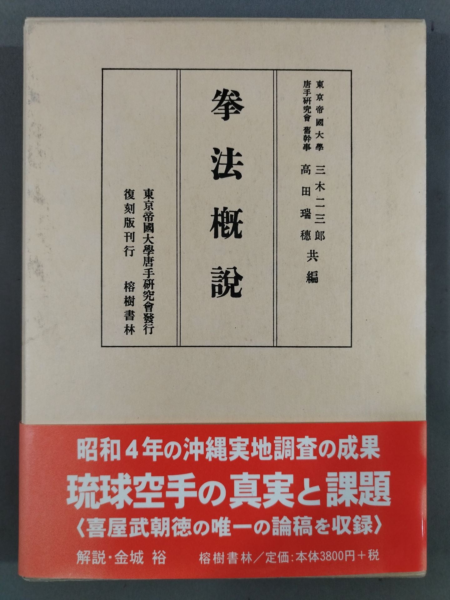 2002 Hardback 榕樹書林 / A book that summarizes the results of the field survey in Okinawa in Showa 4 and shows the truth and issues of Ryukyu KARATE. It is discussed with many figures. A reprint of the revised edition published in the 5th year of the Showa era of the Tokyo Imperial University Karate Study Group. Published by the Karate Research Society, Tokyo Imperial University