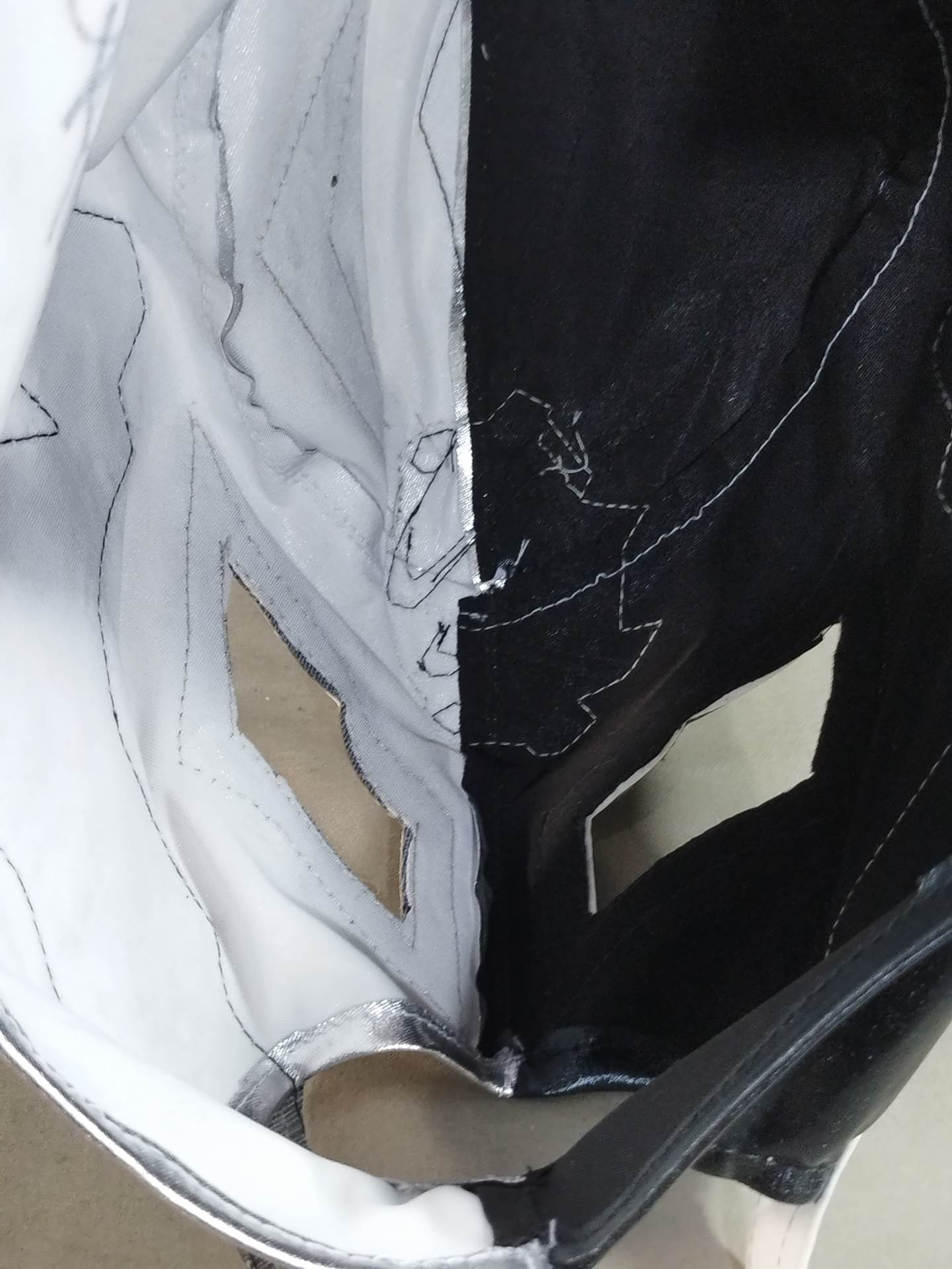 Signed black & silver half satin fabric Black edge & silver special edge & red edge