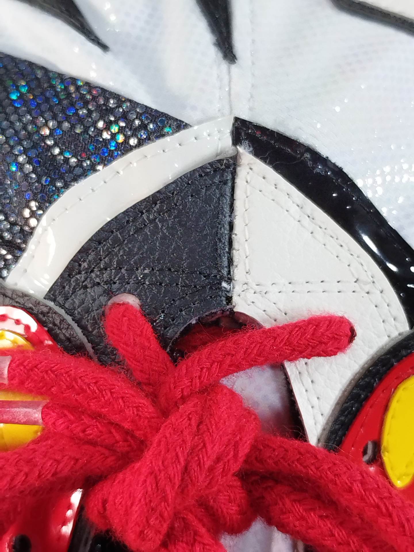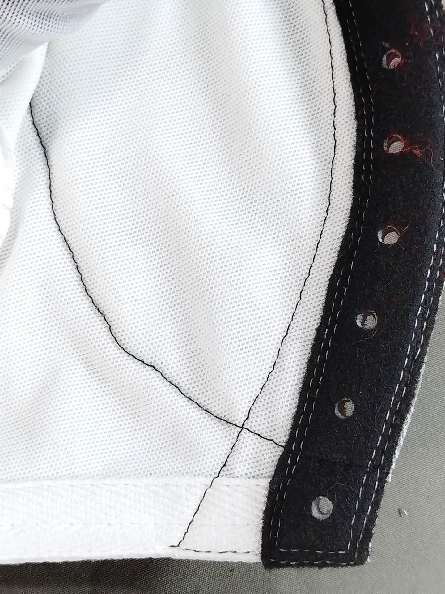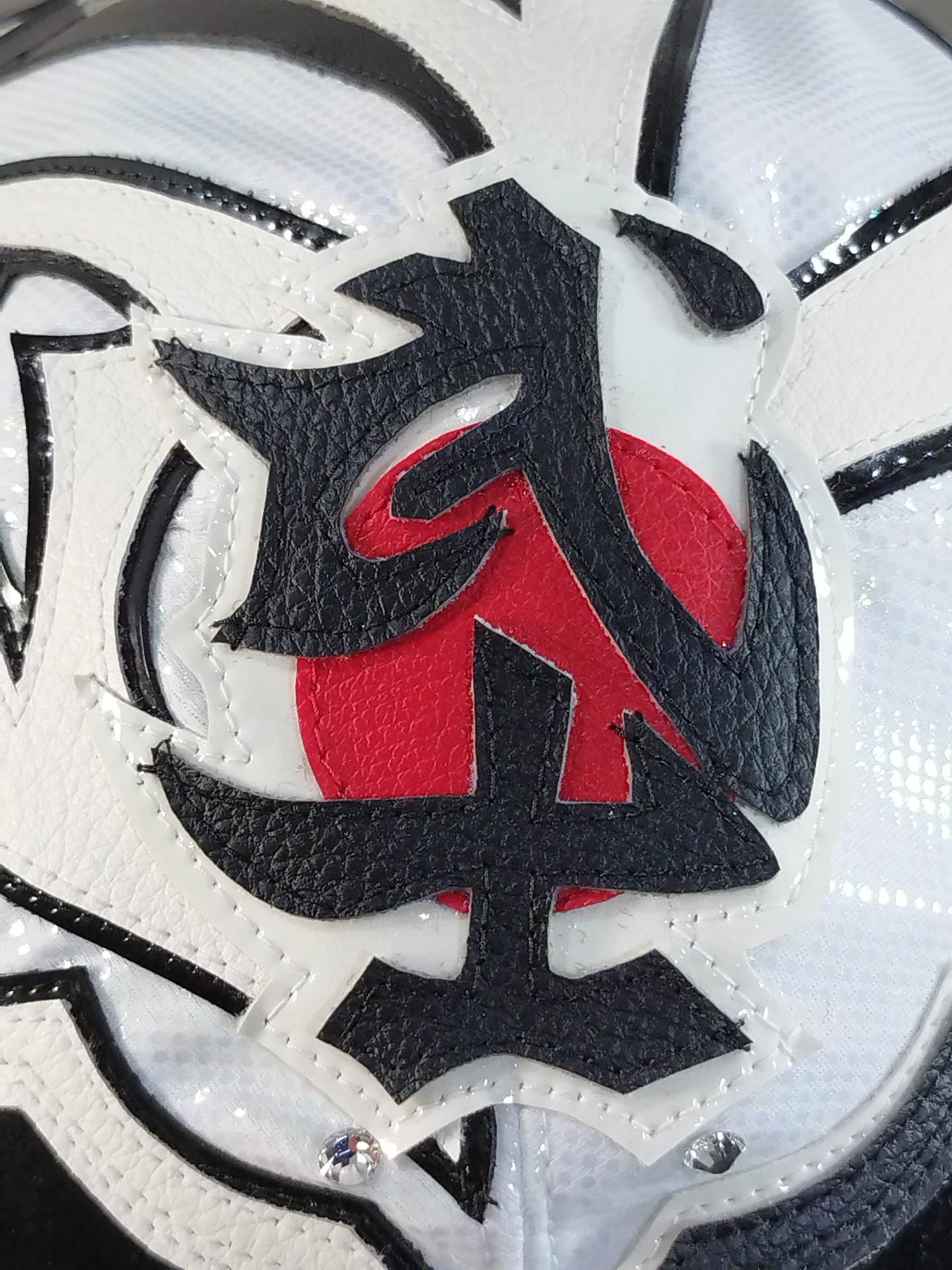Signed (2025.4.20) With wearing photo White Special & Black Special Diagonal Half-Right Otard Double Fabric (Mesh Upholstery) Black Edge & White Special Edge & White edge & black special edge & red special edge & red edge & yellow edge with rhinestone decoration