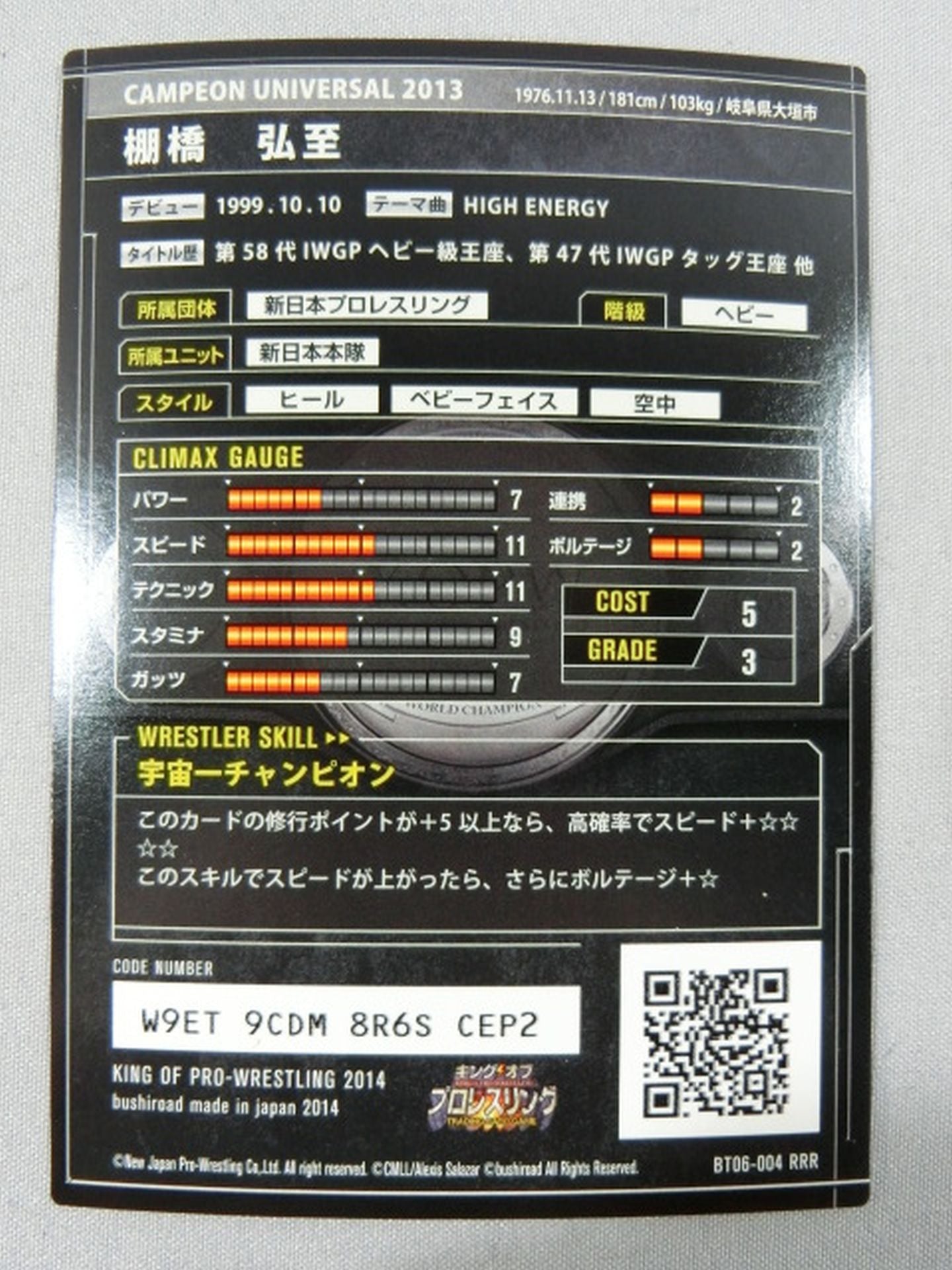【hand signed autograph】 Hiroshi Tanahashi / CHAMPION UNIVERSAL 2013