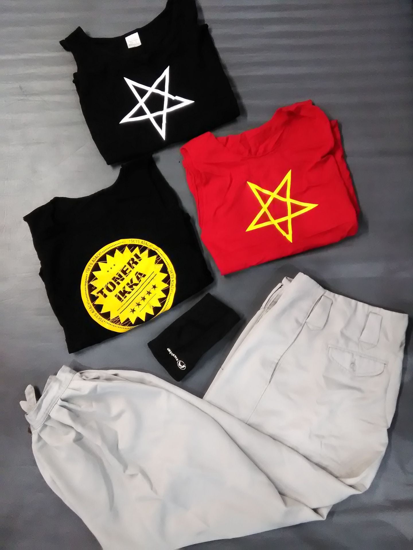 Contents: 3 tank tops, slacks, elbow pads