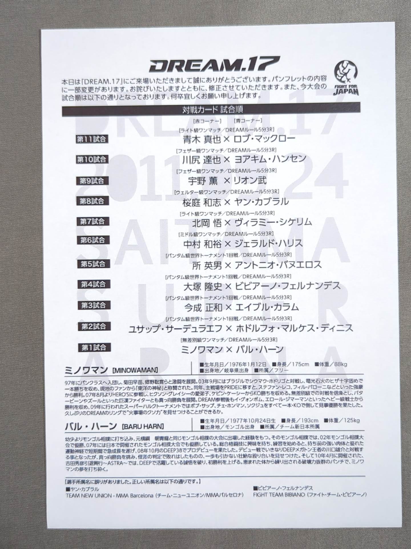 Venue: Saitama Super Arena / list of the matches on the separate sheet Available: Shinya Aoki vs. Rob McCraw / Tatsuya Kawajiri vs. Joachim Hansen / Kaoru Uno vs. Takeshi Leon / Kazushi Sakuraba vs. Jan Cabral