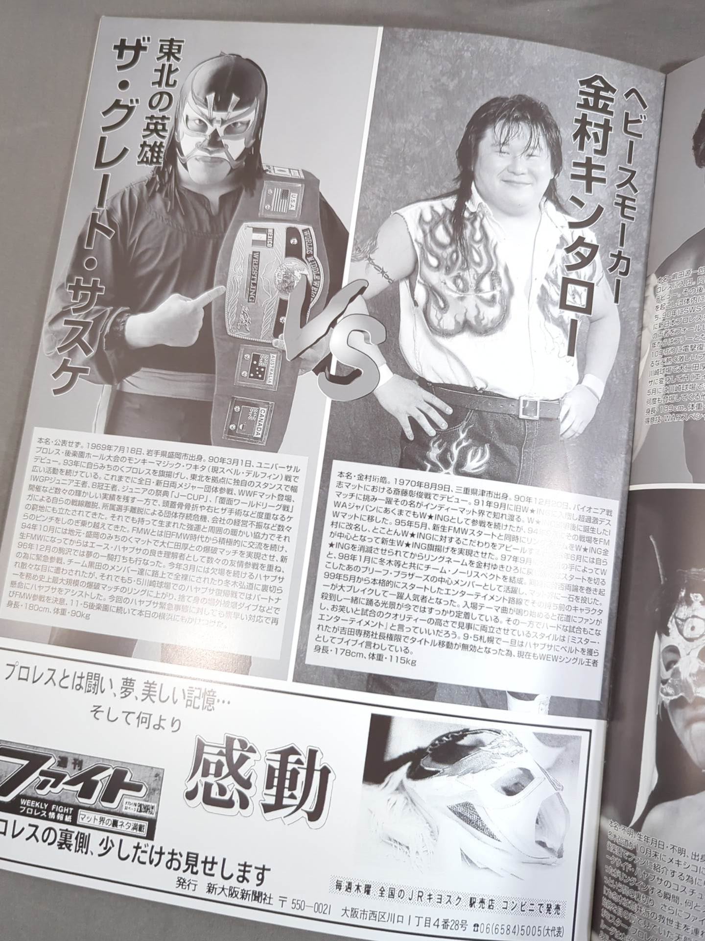 Venue: Yokohama Bunka Gymnasium / list of the matches is printed : Tetsuhiro Kuroda & Garuda vs Tenryu Genichiro &Kodo Fuyuki / [WEW Single fighters Boxing Match] Kintaro Kanemura vs The Great Sasuke