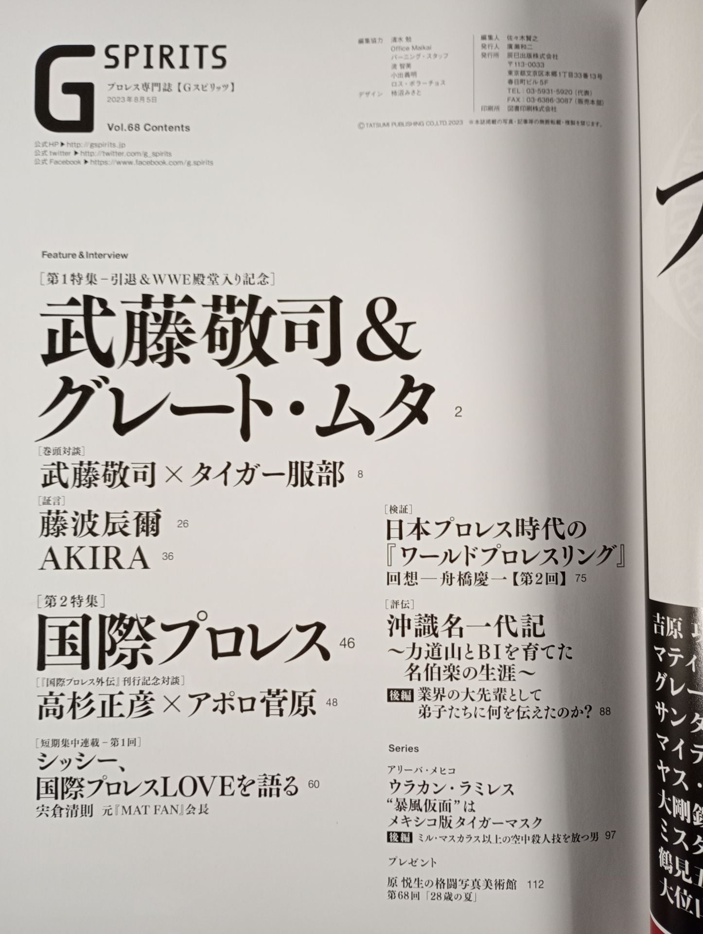 2023 Feature 1 Muto Keiji & Great Muta Feature 2 International Pro Wrestling Keiichi Funahashi Cover: Great Muta, Muto Keiji