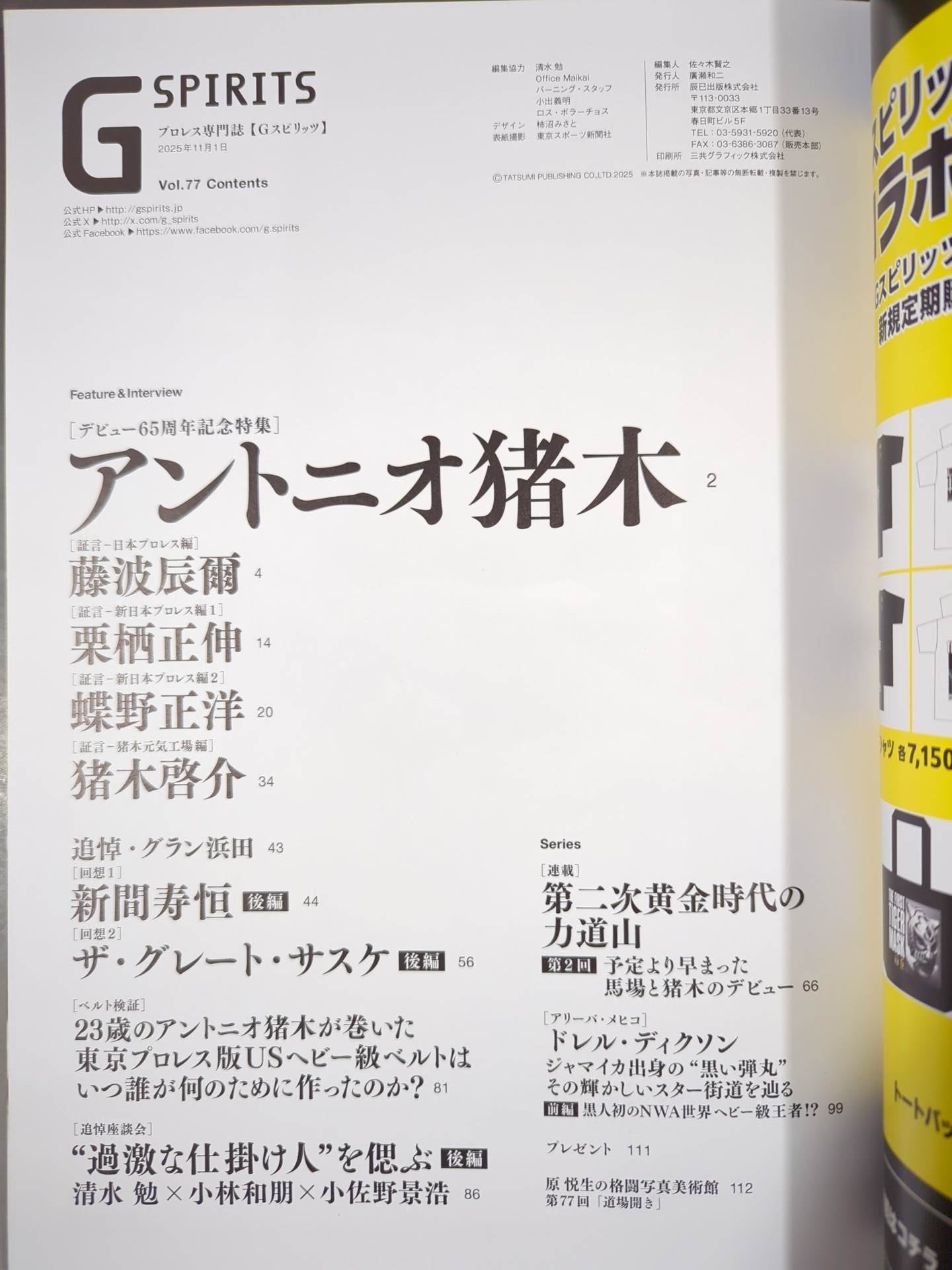 [Antonio Inoki Debut 65th Anniversary Special] Tatsumi Fujinami / Masanobu Kurisu / Masahiro Chono /Keisuke Inoki [Belt Verification] Tokyo Pro Wrestling Edition of the US Heavyweight Championship [Roundtable] Memorial - Hisashi Niima Remembering the "radical instigator" Tsutomu Shimizu× Kazutomo Kobayashi× Kagehiro Kosano [Reminiscence] "Little Giant" Gran Hamada , Hisashi Niima, The Great Sasuke [Serial] Rikidozan in the Second Golden Age [Aliba Mexico] "Black Bullet" Dorrell Dixon