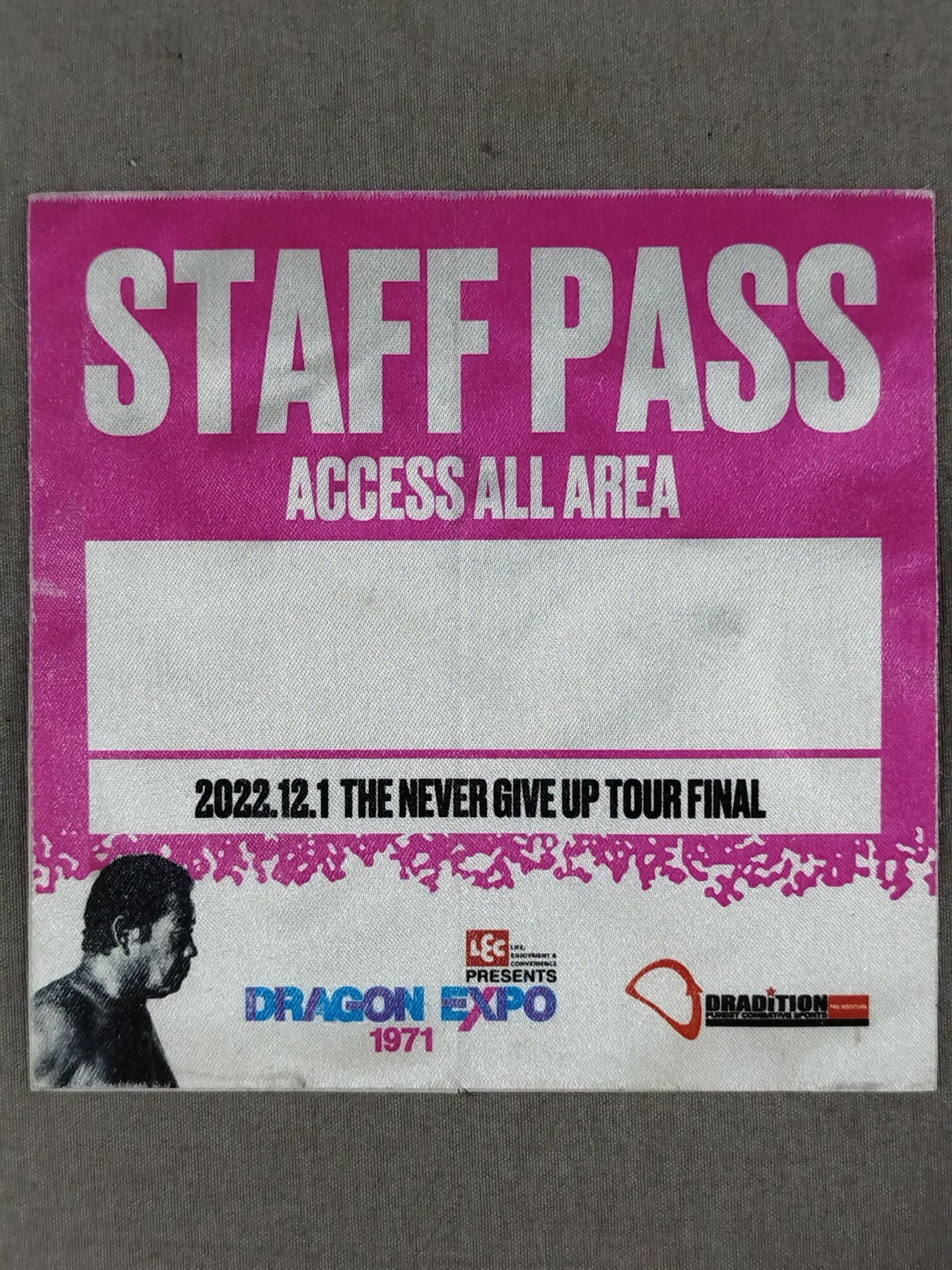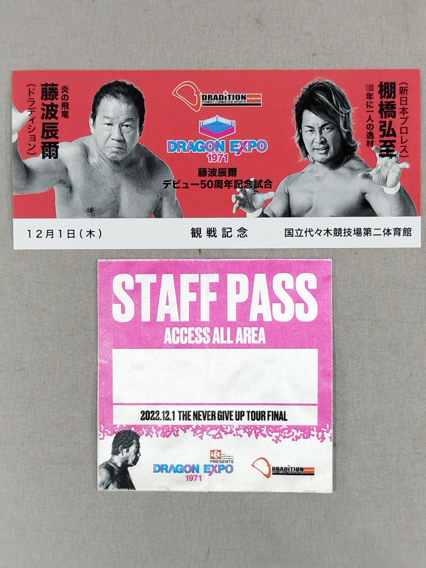 2022 December 1, 2022 Yoyogi National Stadium 2nd Gymnasium THE NEVER GIVE UP TOUR FINAL Tatsumi Fujinami vs Hiroshi Tanahashi A set of staff pass cards and commemorative tickets not sold in stores for the tournament where the match was played Tatsumi Fujinami Debut 50th Anniversary Match FINAL