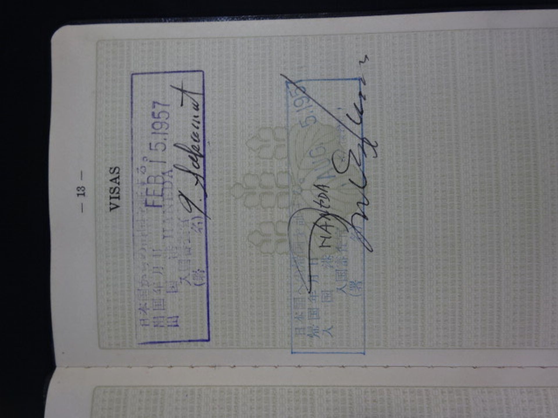 1957 The passport used when I went on my first expedition to Hawaii from February ~ August 1957 (2/15 departure stamp and 8/5 return stamp) Signed with real name "Sadano Michiharu" The face photo is removed, but after the person himself has expired his passport, it is replaced by something else. What I peeled off to reuse the photo After going to Hawaii with Rikidozan in February, he continued his expedition for six months, and on July 4 in Honolulu. He is challenging Lou Thesz for the NWA World Title. On August 10, after returning to Japan, a tournament called "Toyonobori Welcome Match" was held and broadcast live on TV with a Inoki and a surfboard on the beach in Hawaii. With photo