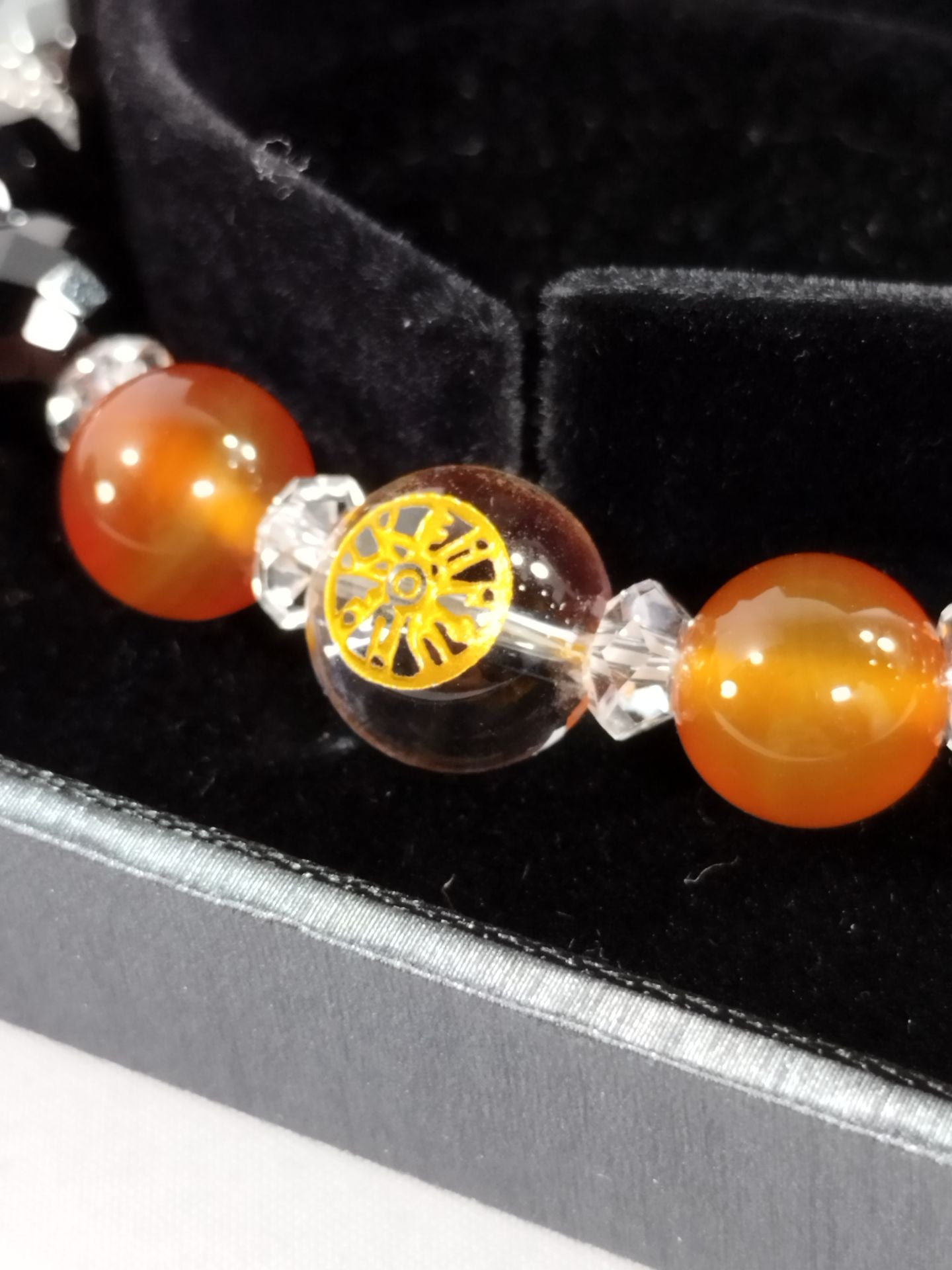 A limited-quantity product approved by KENTA KOBASHI THAT USES CARNELIAN FOR SUCCESS AND ACHIEVEMENT OF GOALS, CARNELIAN FOR PERSEVERANCE AND STABILITY, ONYX FOR PATIENCE AND STABILITY, AND HEMATITE FOR VICTORY.