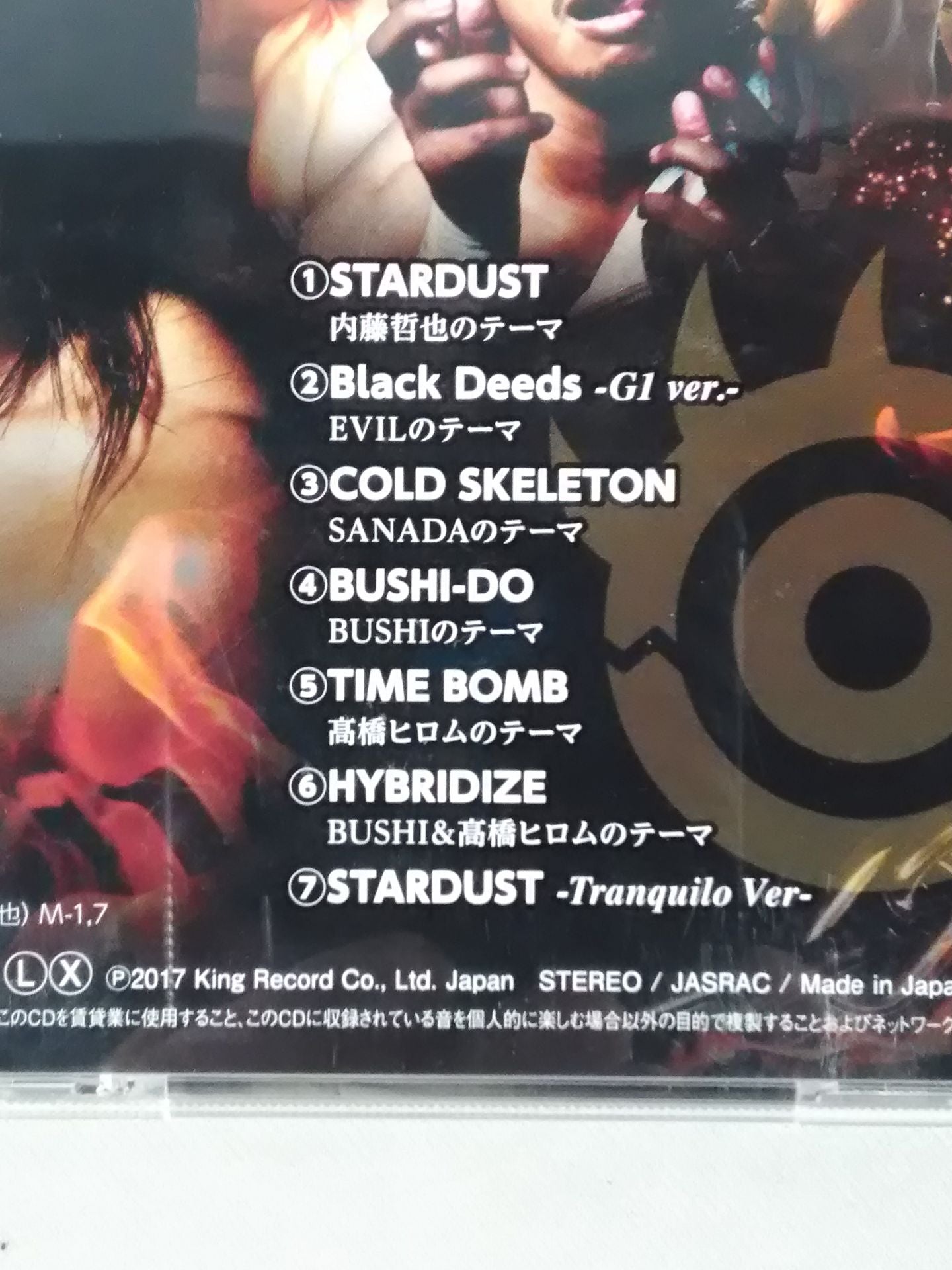 1. Tetsuya Naito's theme "STARDUST" 2. EVIL's theme "Black Deeds ? G1 ver.-" (first CD release)3.SANADA's theme "COLD SKELETON"4. BUSHI 's theme "BUSHI -DO" 5. Hiromu Takahashi 's theme 'TIME BOMB'6. BUSHI & Hiromu Takahashi 's theme "HYBRIDZE" (first CD release) 7.STARDUST ? Tranquilo Ver.- (First CD)