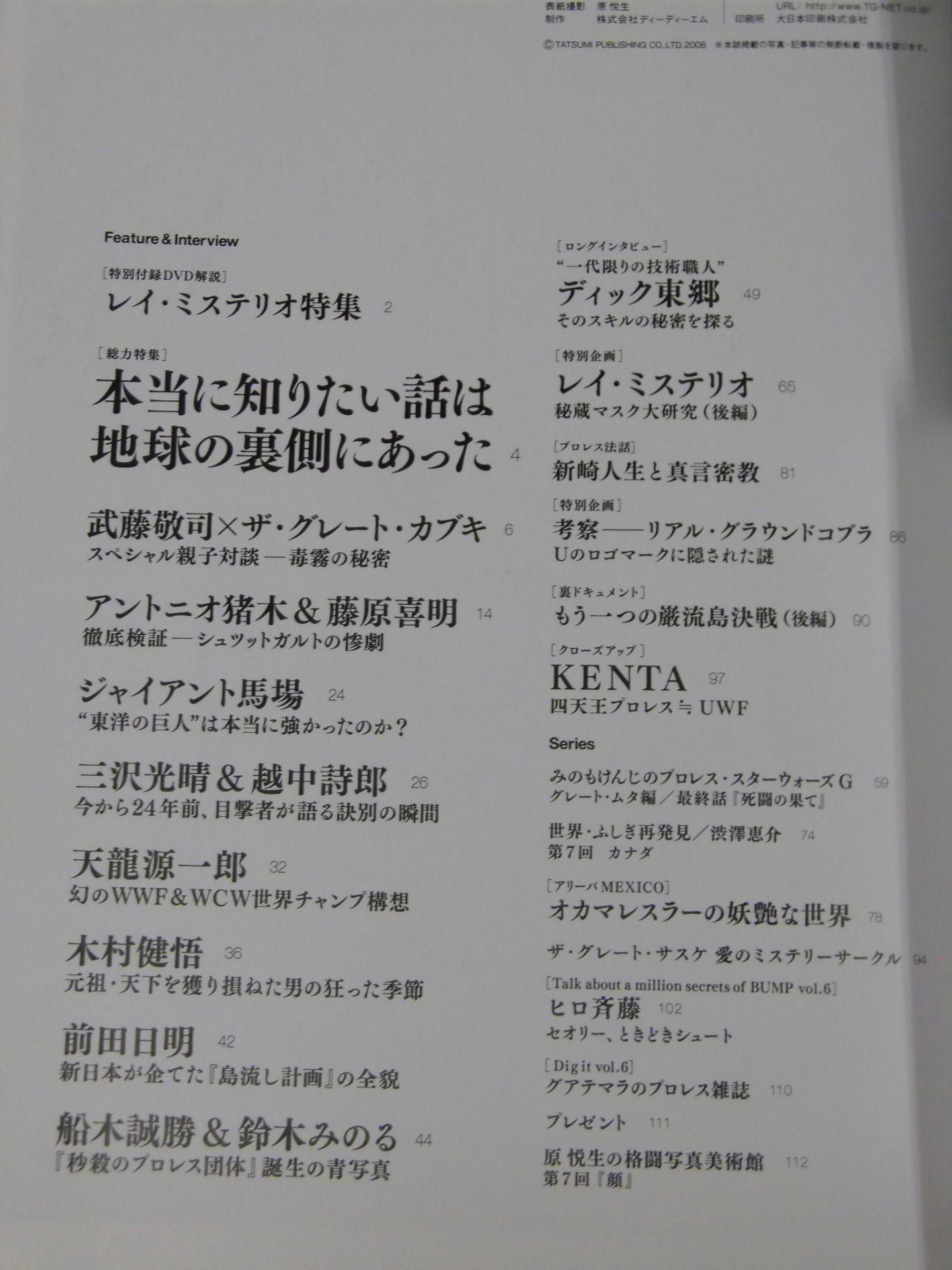 The story I really wanted to know was on the other side of the world Conversation: Muto Keiji × Kabuki Misawa & Echinaka DVD: Rey Mysterio Special Feature: Cover: Great Muta
