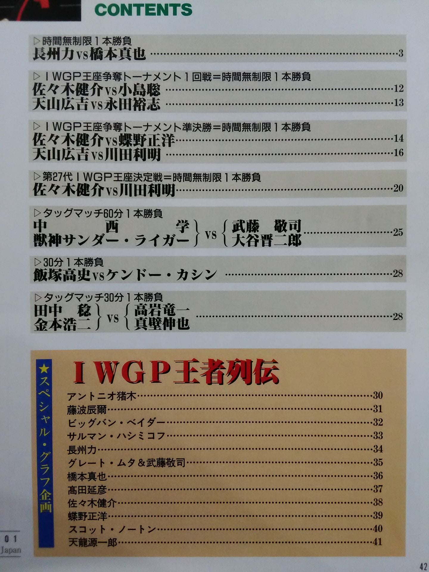 2001 New Japan Pro Wrestling January 4, 2001 Tokyo Dome Complete Bulletin Cover: Shinya Hashimoto , Riki Choshu