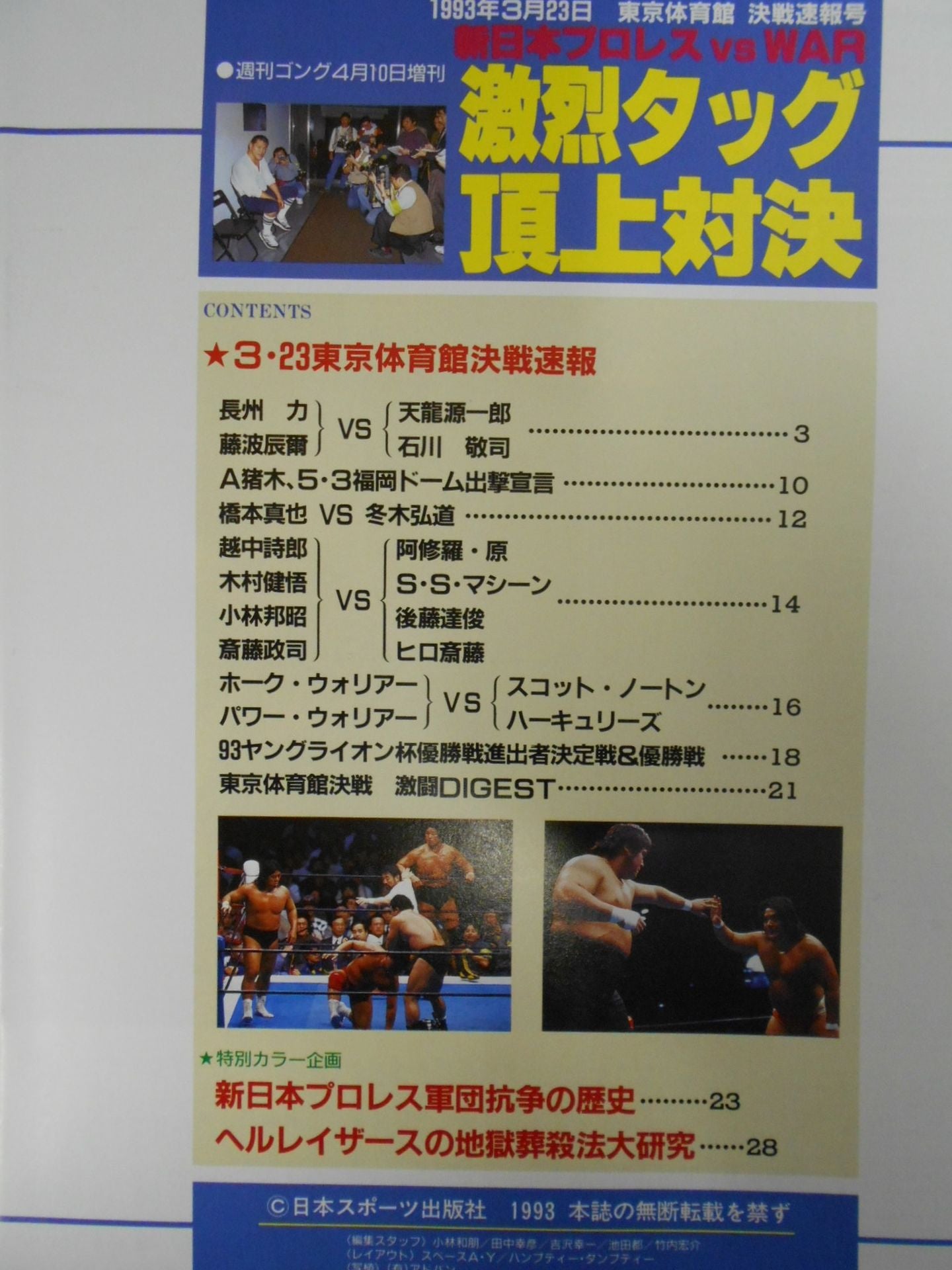 1993 March 23, 1993 Tokyo Metropolitan Gymnasium New Japan Pro Wrestling vsWAR Cover: Tenryu Genichiro , Riki Choshu , Tatsumi Fujinami