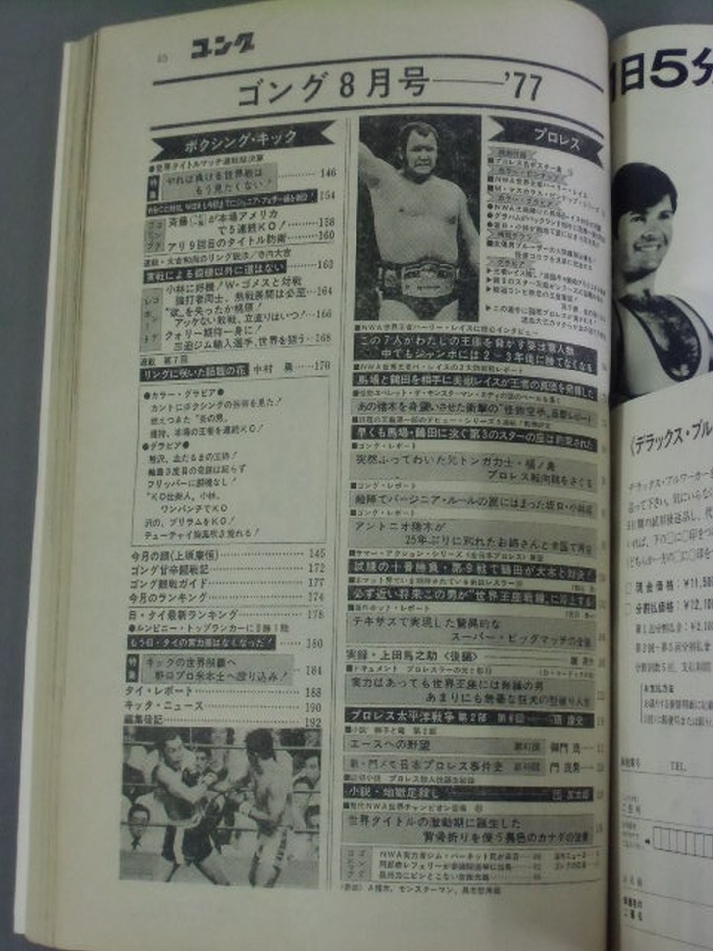1977 ・NWA Champion Wraith Direct Hit Press Conference ・A Inoki's Martial Arts Fight Update ・World Title Match Summary ・Noguchi Kick Punch Hit by US Mainland / [Appendix] ○ Pin-Up (Table Harley Race / Back Mascaras Pin-Up Series (3)) ○ Special Appendix (Pro Wrestling Name Poster Collection (10) 1960 Rikidozan vs Wright's InterFighters )