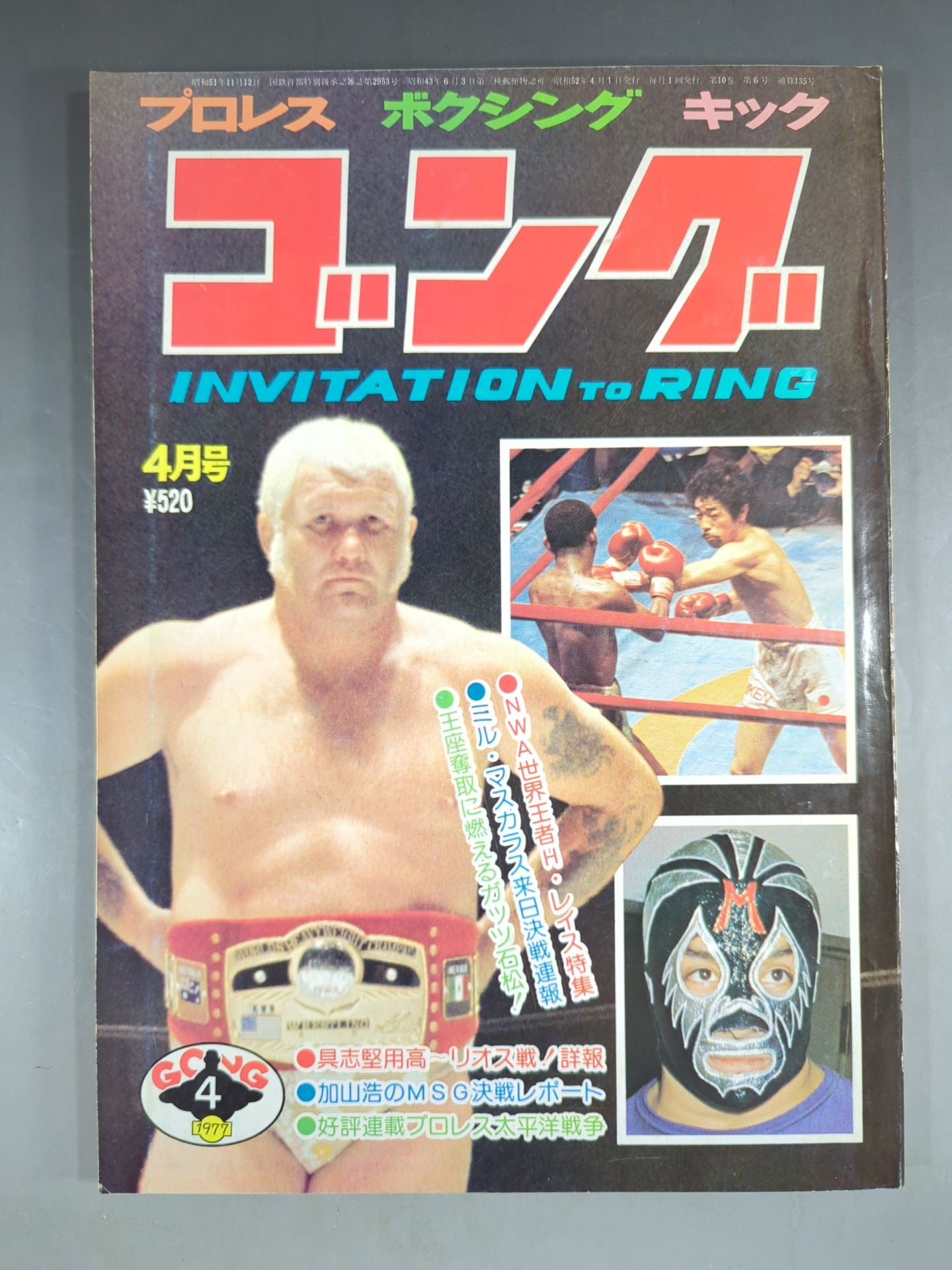 1977 NWA World Champion H. Reith Special Report Mil Mascaras Coming to Japan Headline Guts Ishimatsu burning to capture the title! Yoko Gushiken ~ Rios Battle!Detailed Report Hiroshi Kayama's MSG Battle Report Popular Series Pro Wrestling Pacific War / [Appendix] ○ Pin-Up (TableHarley Race / Uramascaras & El Santo) 〇 Special Appendix (Pro Wrestling Name Poster Collection [6] 4th World Major League Match New Japan Pro Wrestling ) Cover: Harley Race