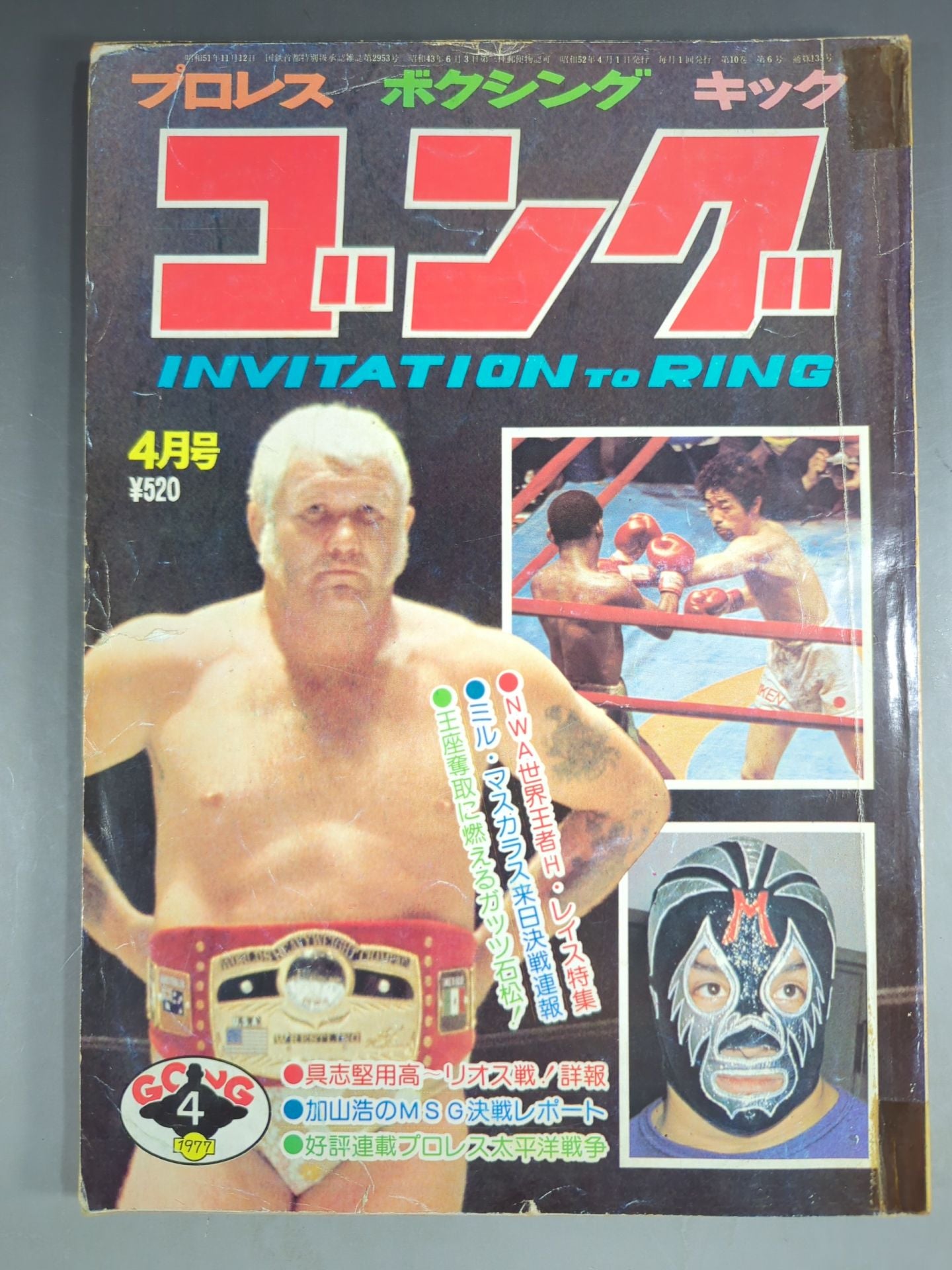1977 NWA World Champion H. Reith Special Report Mil Mascaras Coming to Japan Headline Guts Ishimatsu burning to capture the title! Yoko Gushiken ~ Rios Battle!Detailed Report Hiroshi Kayama's MSG Decisive Battle Report Popular Series Pro Wrestling Pacific War / [Appendix] × Pin-Up (TableHarley Race / Uramascaras & El Santo) △ Special Appendix (Pro Wrestling Name Poster Collection [6] 4th World Major League Match New Japan Pro Wrestling (with tears) Cover: Harley Race