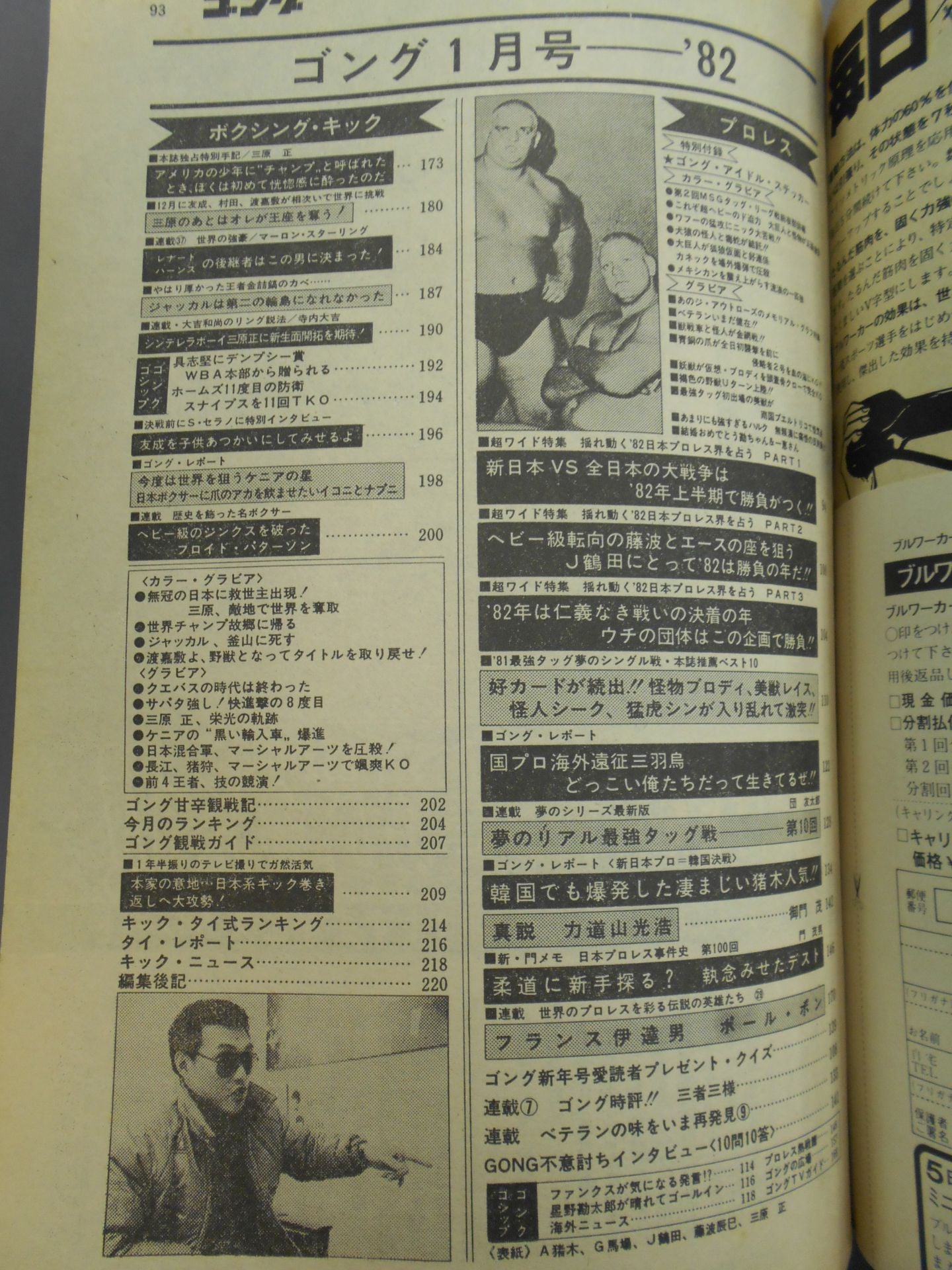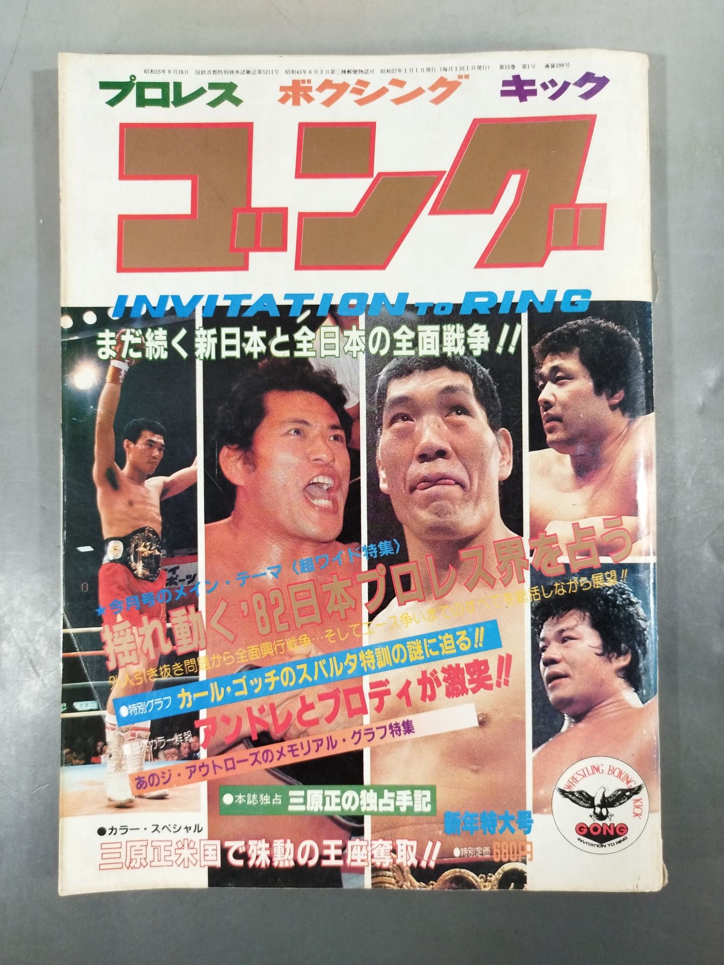 1982 Shaking '82 Japan Pro Wrestling Special Graph Karl GotchApproaching the mystery of Spartan special training! Overseas Color Detailed ReportAndre and Brody clash! The Outlaws' Memorial Graph Special Feature: Exclusive Memoirs of Tadashi Mihara / [Appendix] ◯ Special Appendix (Gong Idol Sticker (5) Antonio Inoki , Salvador Sanchez) Cover: Antonio Inoki , Giant Baba , Jumbo Tsuruta, Tatsumi Fujinami , Tadashi Mihara
