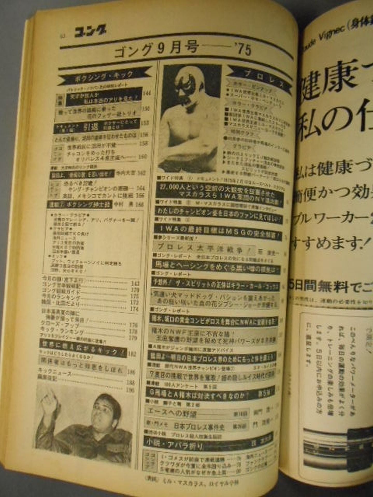 1975 Interview with Mil Mascaras Iron Claw Eric Arrival in Japan Bulletin of Ali and Freischer Special Feature: Mascaras and other IWA factions advance to the east / [Appendix] 〇Pin-up (front mascaras / back super Jose Ventura)