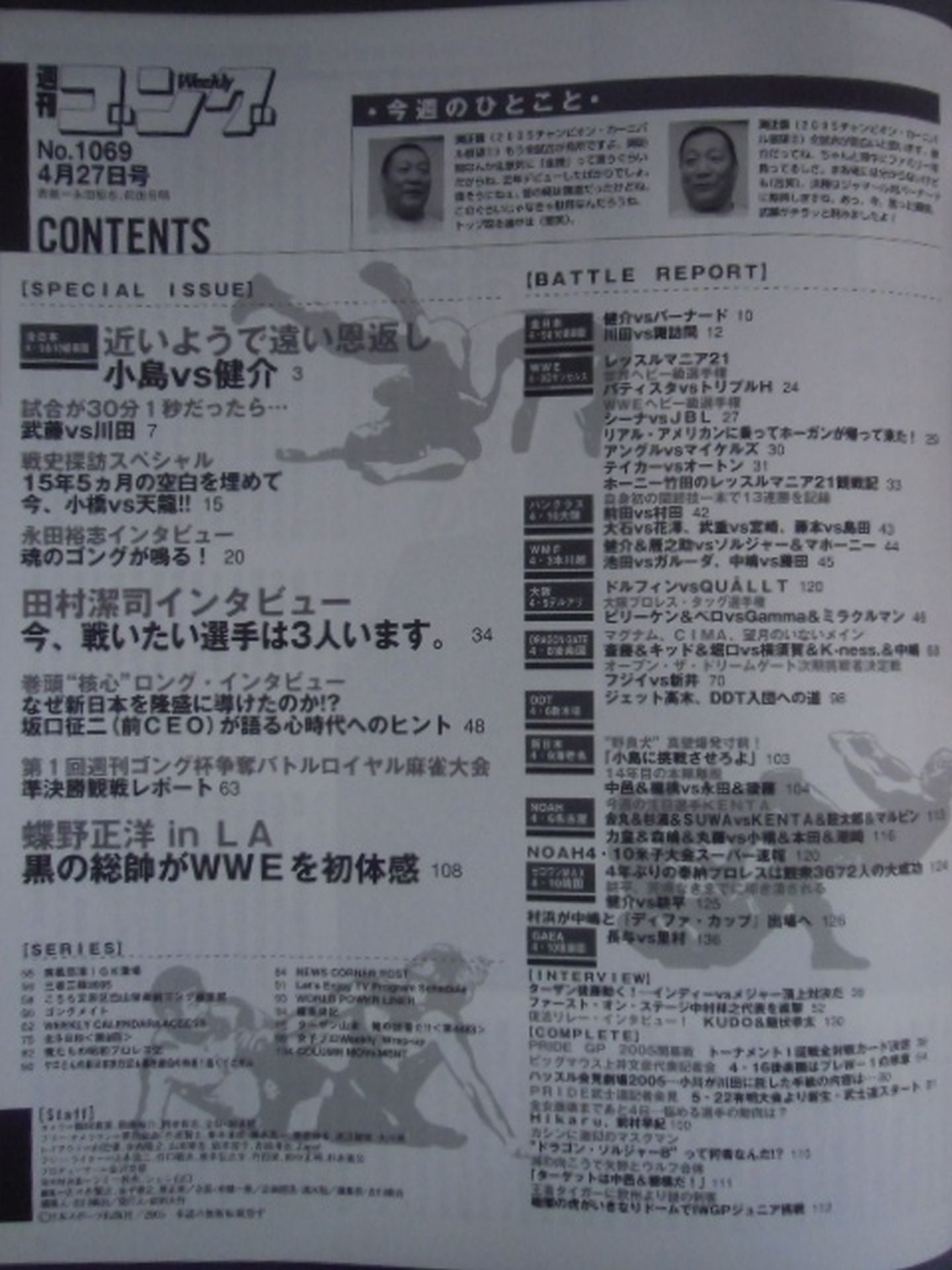 2005 "Bomb Man" Yuji Nagata Makes a Move!/Kiyoshi Tamura, Gekihaku! I had an offer from New Japan Pro Wrestling ." Cover: Yuji Nagata , Akira Maeda