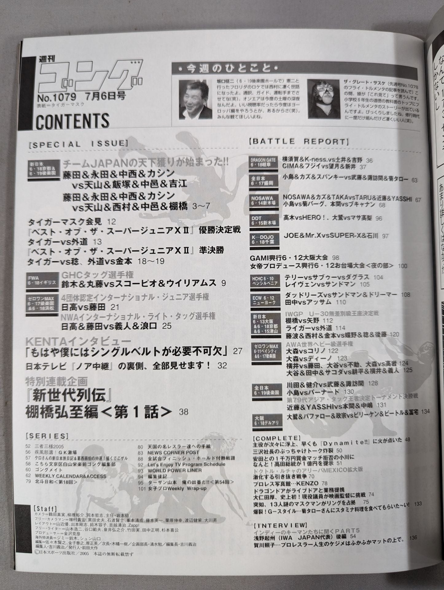 2005 New Golden Tiger Legend / Manga series "New Generation Retsuden: Hiroshi Tanahashi " started Cover: Tiger Mask, Fiancée Izumi