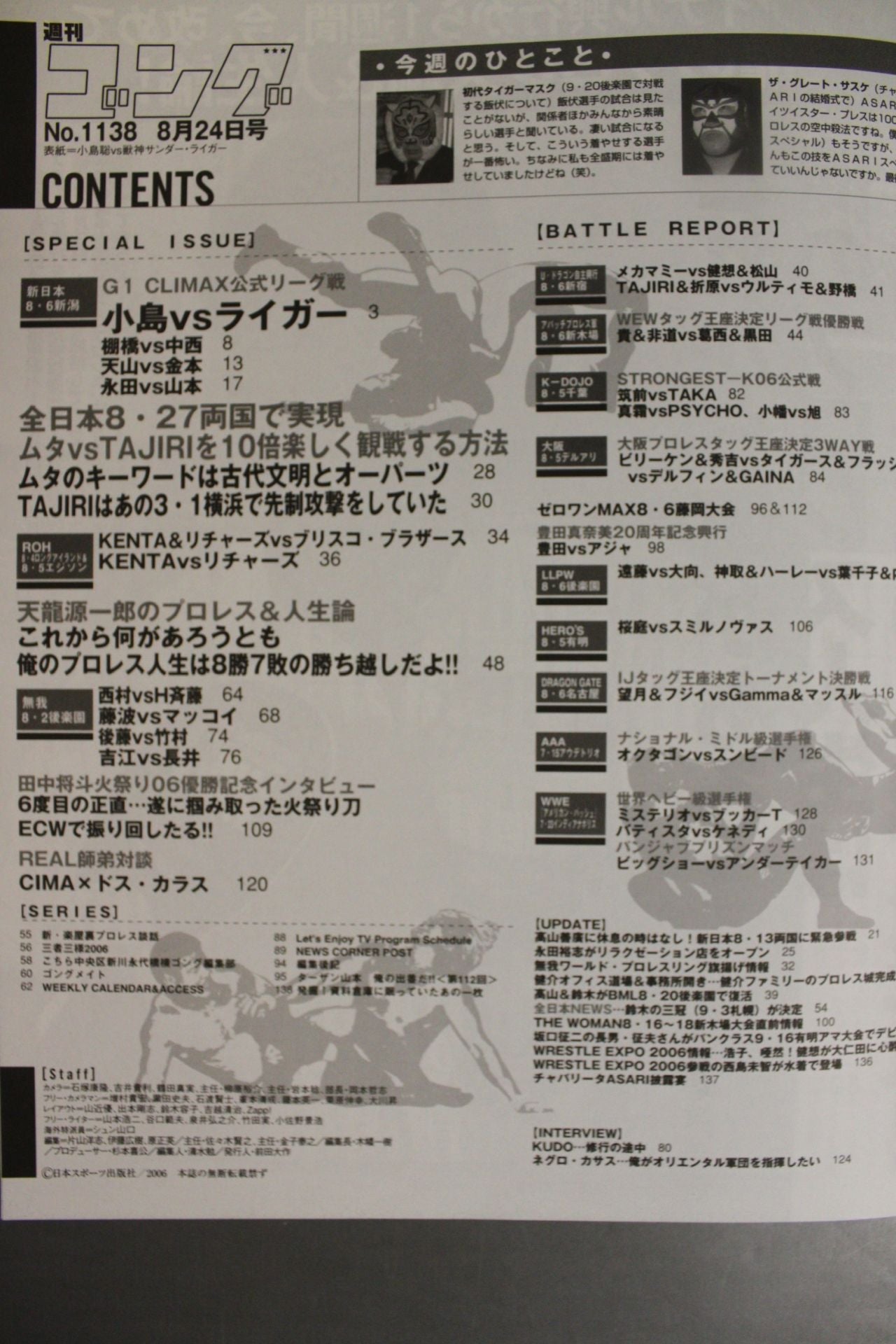 2006 G1 Impact! New Japan Slash Kojima Cover: Satoshi Kojima vsJushin Thunder Liger
