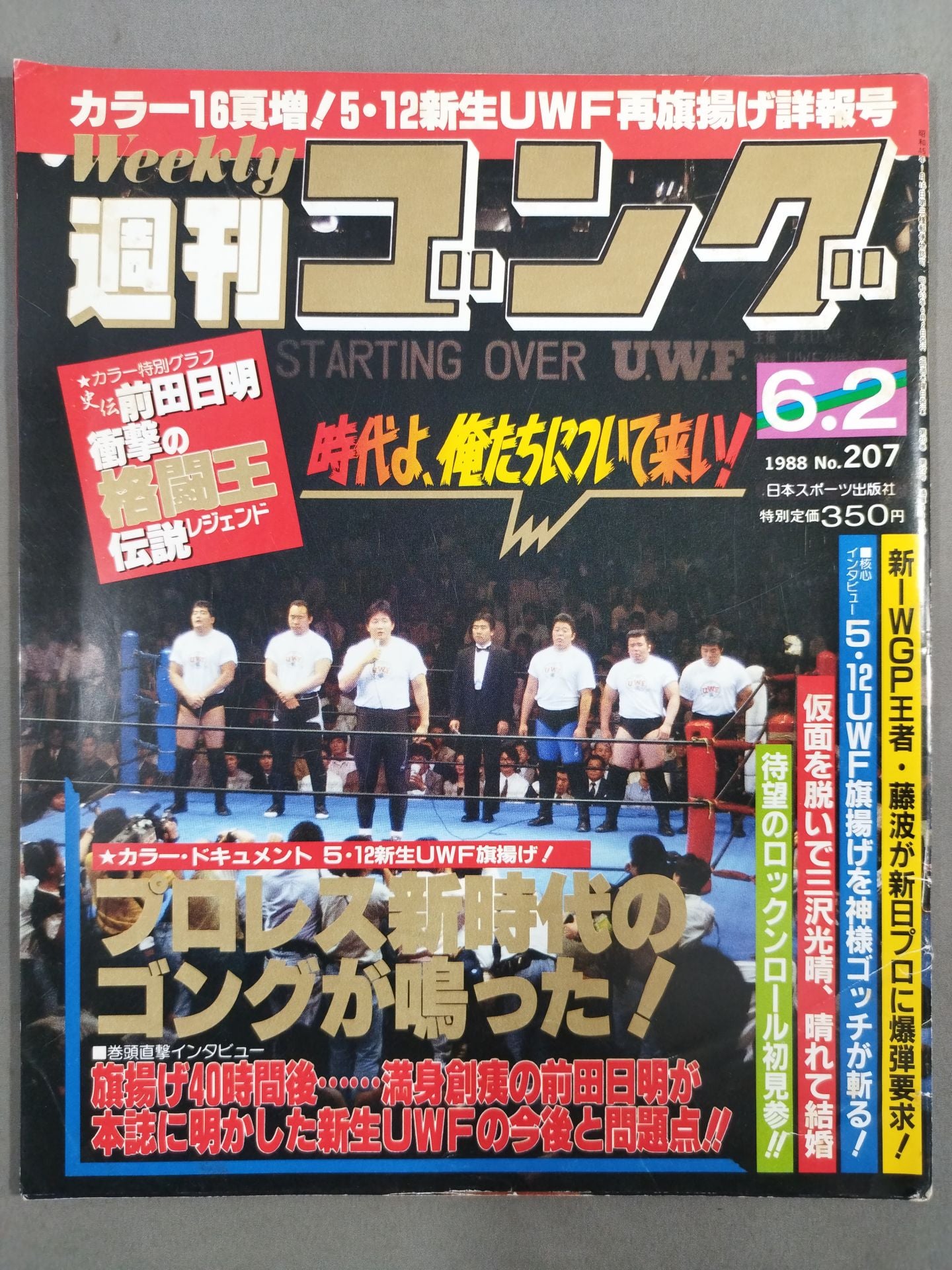 1988 May 12 New UWF Re-Flag-Raising Detailed Report / Pin-Up: Akira Maeda Cover: New UWF Flag Raising Greeting (Akira Maeda )