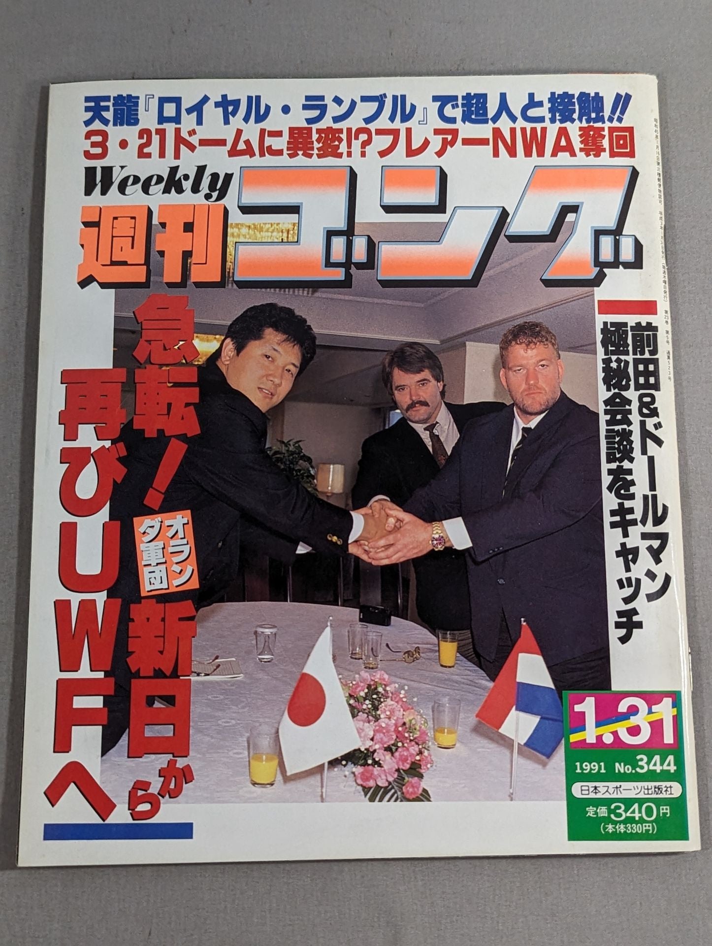 Sudden turn! From Dutch Legion New Japan to UWF again / Pin-up: Atsushi Onita / Cover: Akira Maeda , Chris Dollman