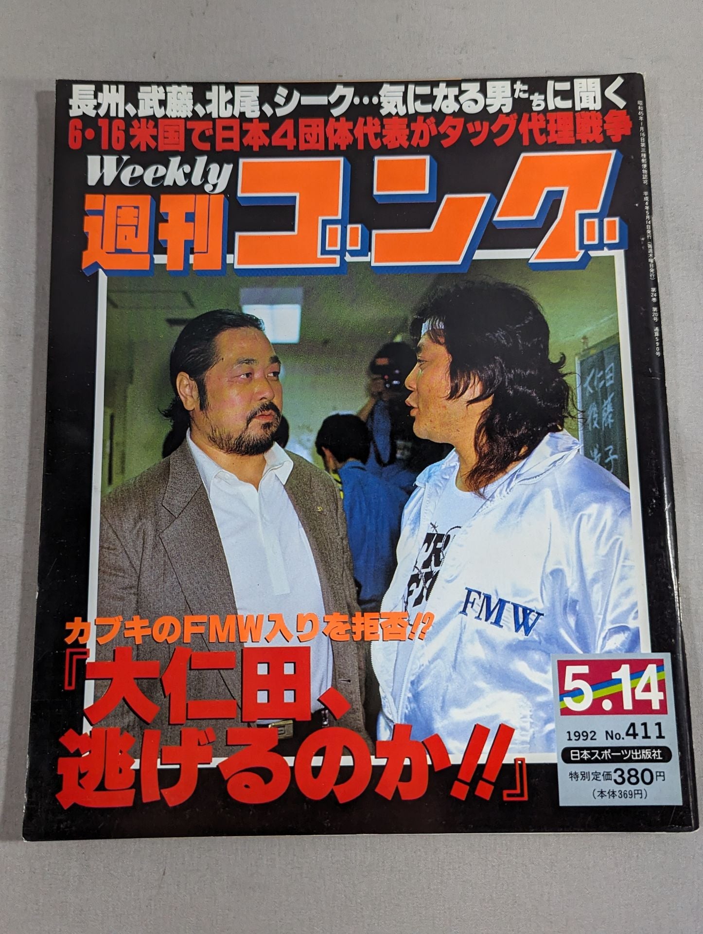 1992 Kabuki refuses to join FMW! "Onita, are you going to run away!!" Cover: Atsushi Onita , The Great Kabuki