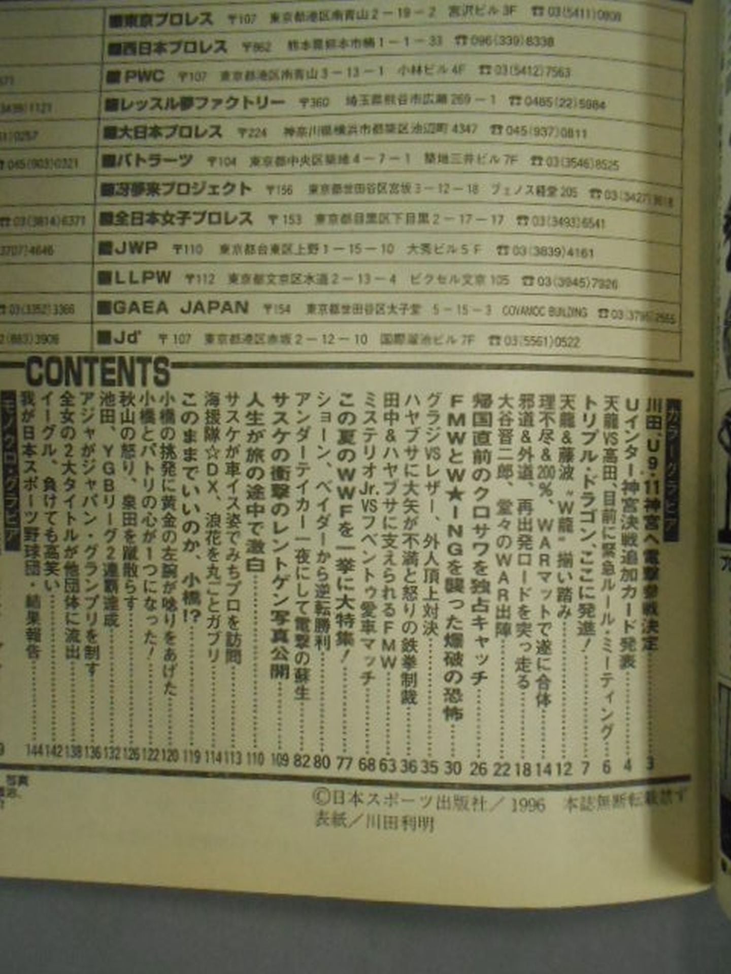 1996 Kawada leaves Jingu on 9/11! / Pin-up: Jinsei Shinzaki Cover: Toshiaki Kawada