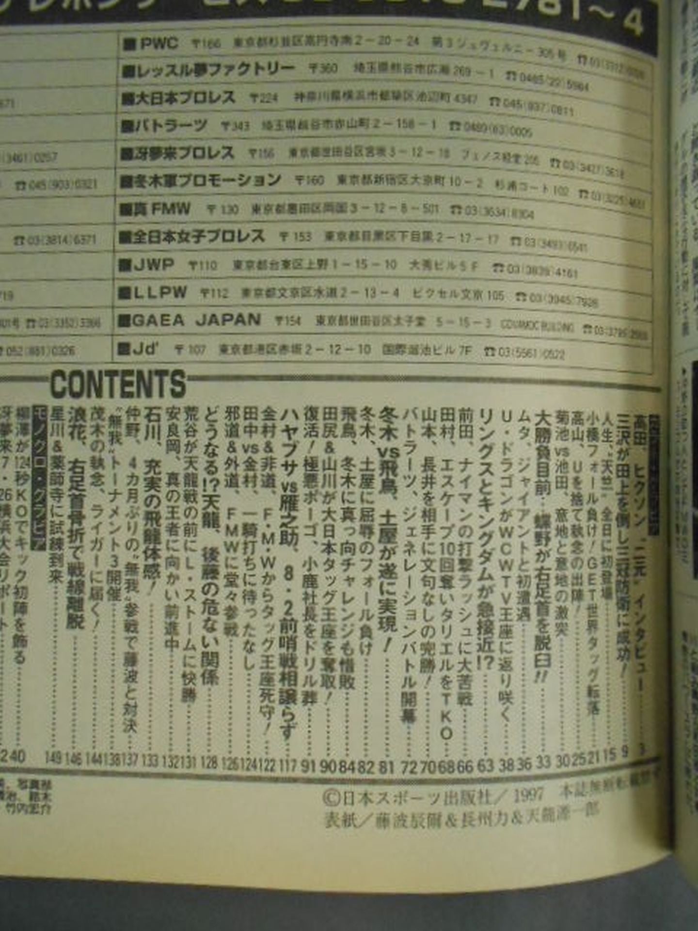 1997 Takada vs Hickson Binary Interview!! / Pin-up: MARLENA Cover: Tatsumi Fujinami , Riki Choshu , TenryuGenichiro