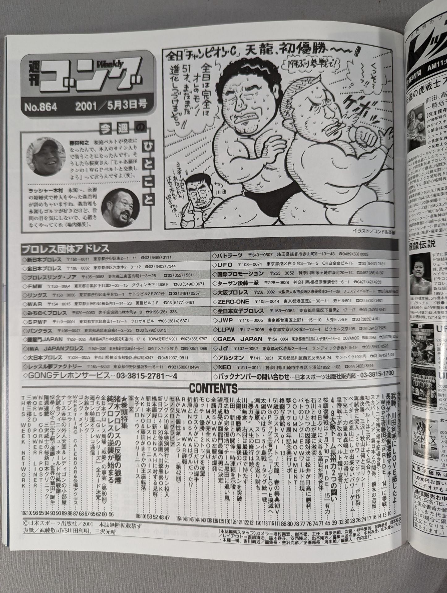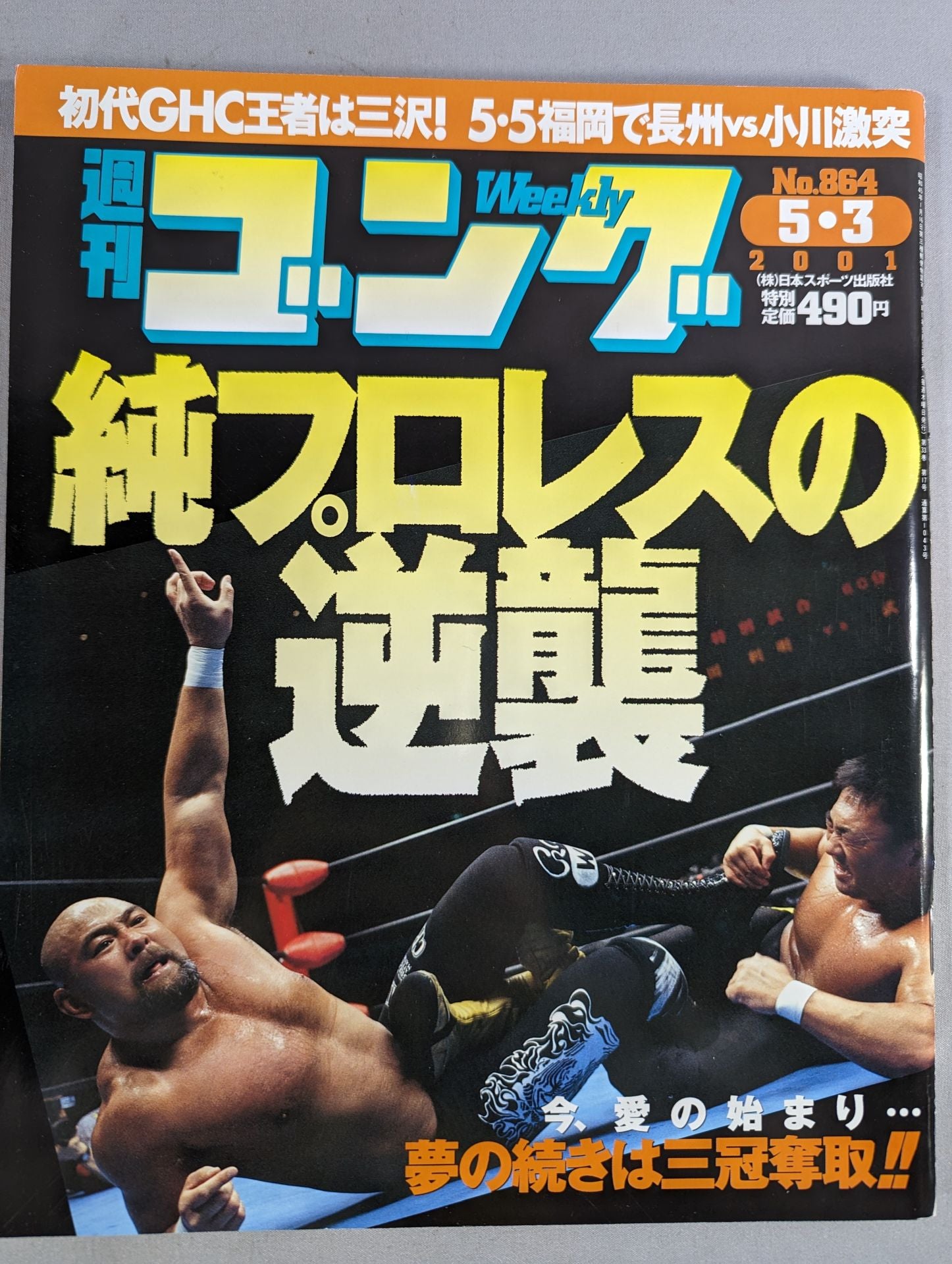 2001 Pure Pro Wrestling Strikes Back Now, the Beginning of Love... The continuation of the dream is to win the Triple Crown! / The first GHC champion is Misawa! 5.5 Riki Choshu vs Ogawa Clash in Fukuoka Cover: Muto Keiji , Toshiaki Kawada